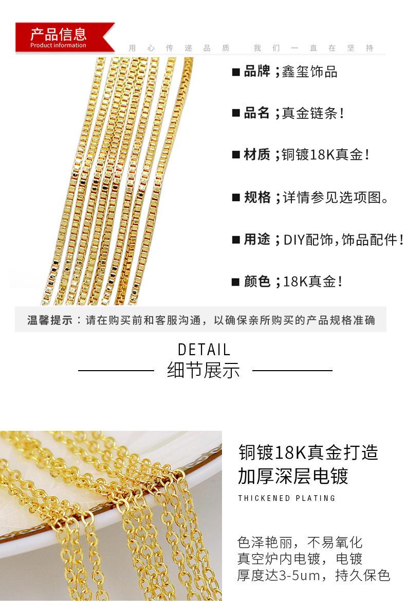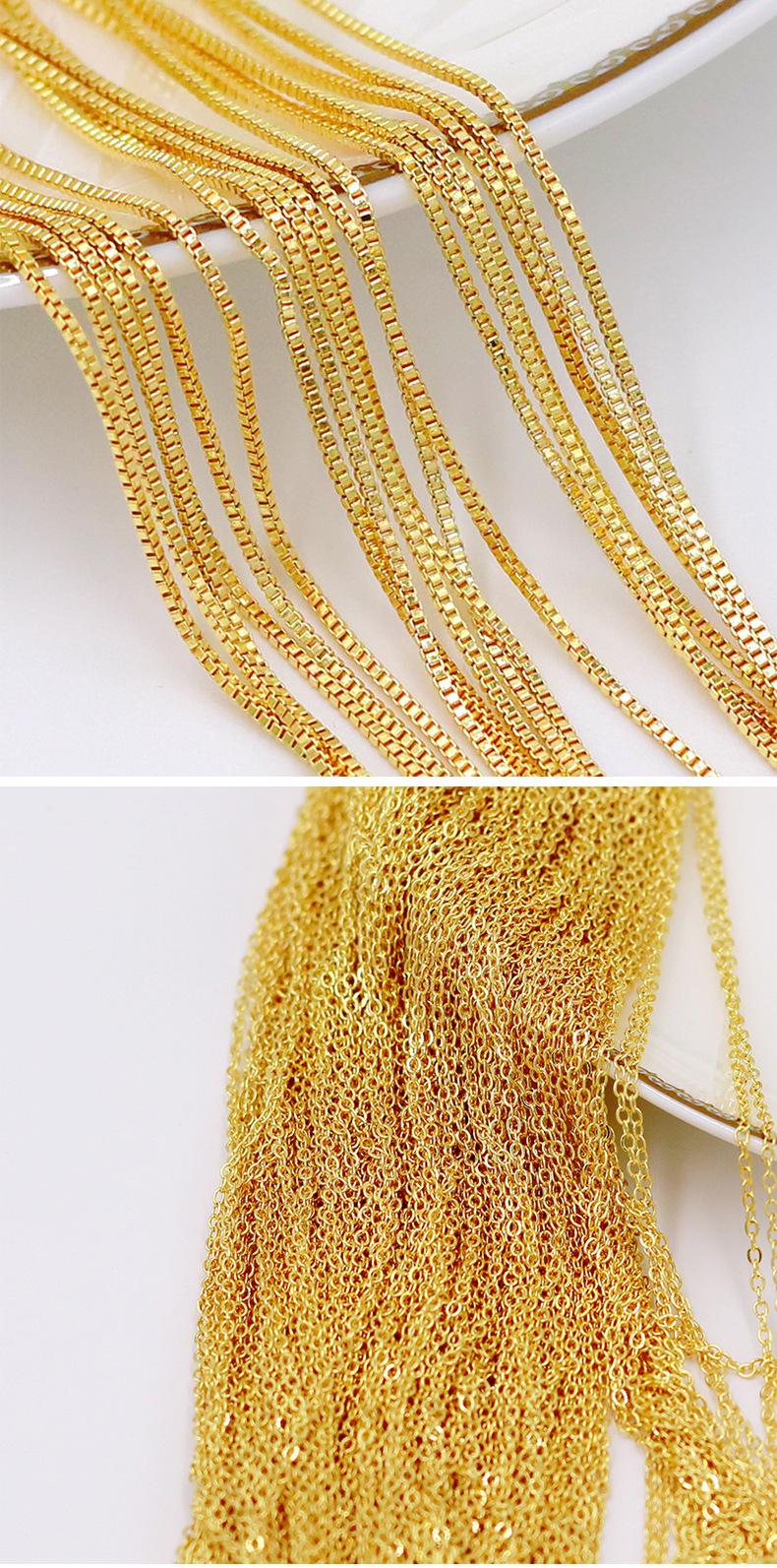Bolso Cadena Oro Verdadero 18K Color Oro 235 Pinza Cadena Metálica de Cuentas Grandes Cadena Caja Cadena O Plana Collar DIY Tira E37