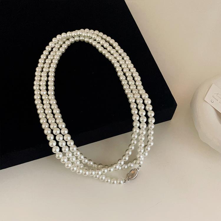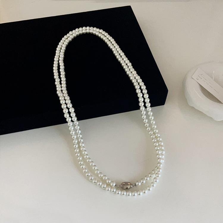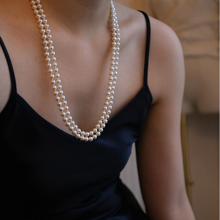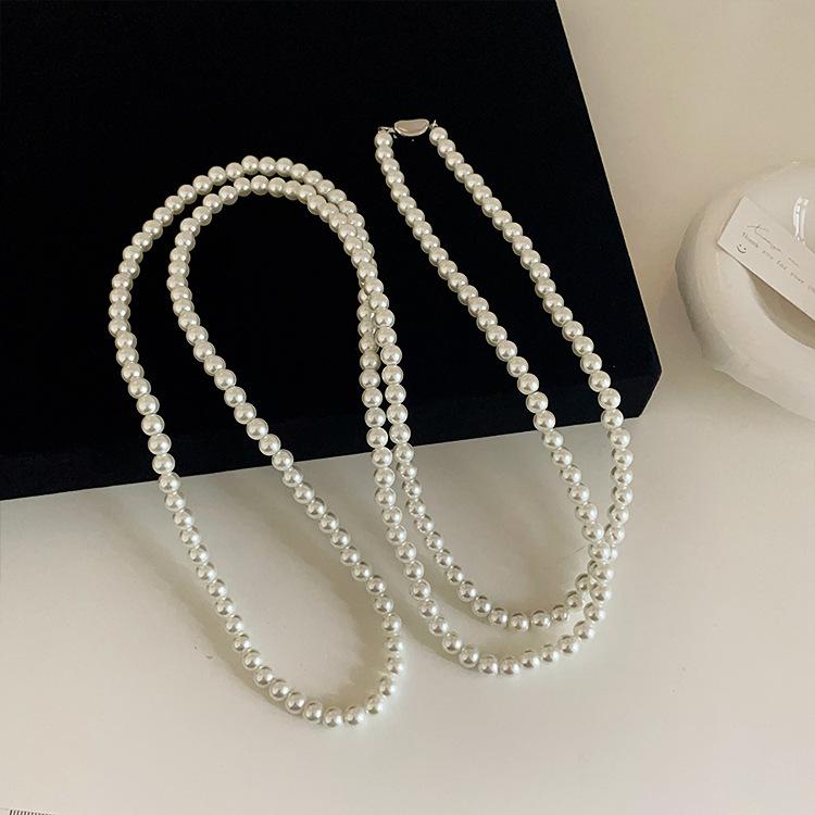 Compra Collar de perlas con hebilla de lingote largo para mujer, estilo retro francés, sencillo, combinable, elegante, cadena de suéter de moda al por mayor en Joom.pro
