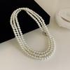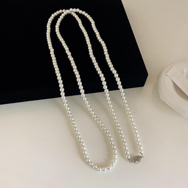 Collar de perlas con hebilla de lingote largo para mujer, estilo retro francés, sencillo, combinable, elegante, cadena de suéter de moda