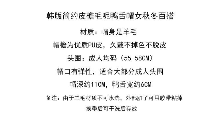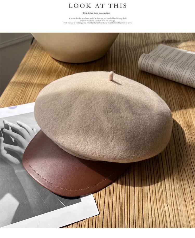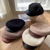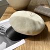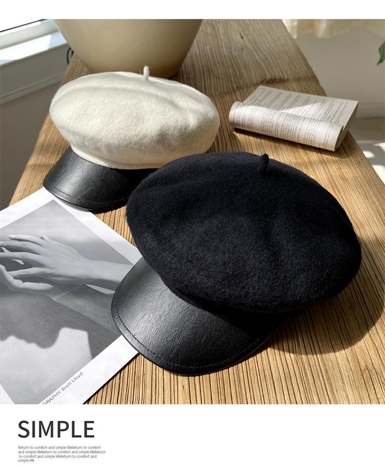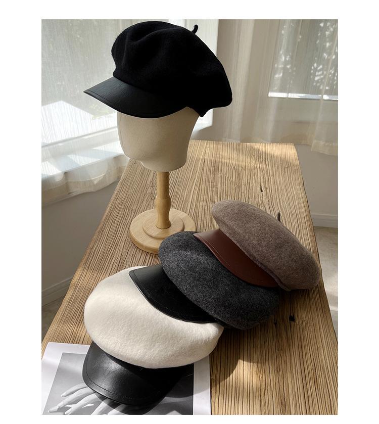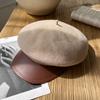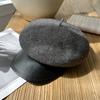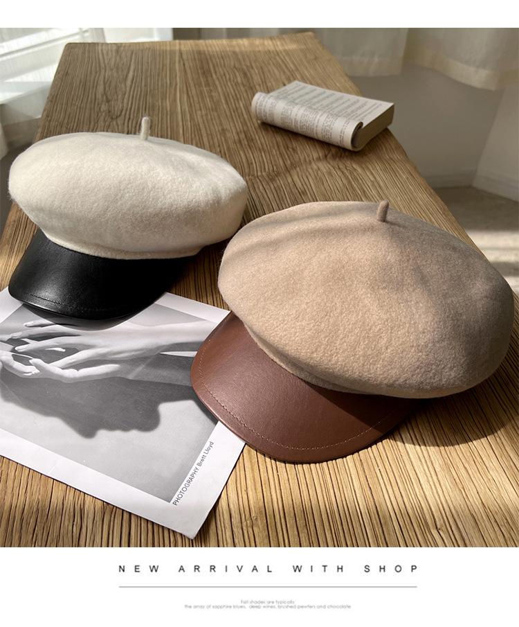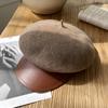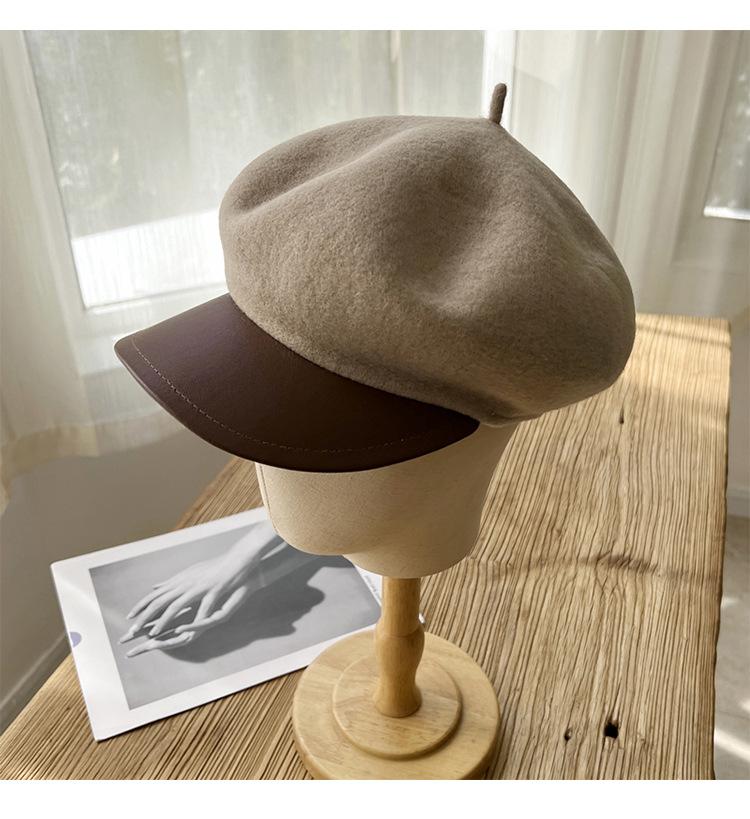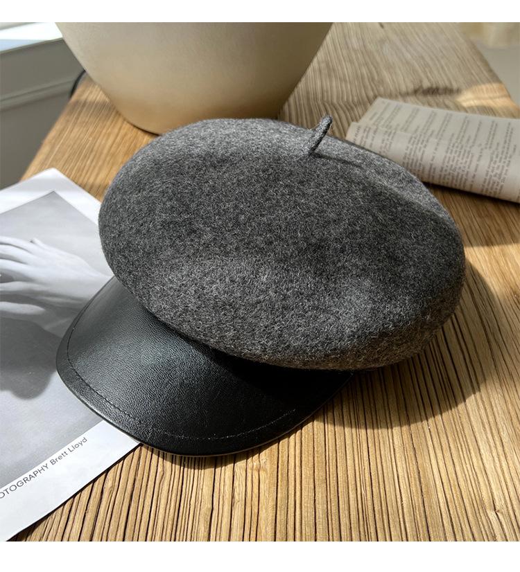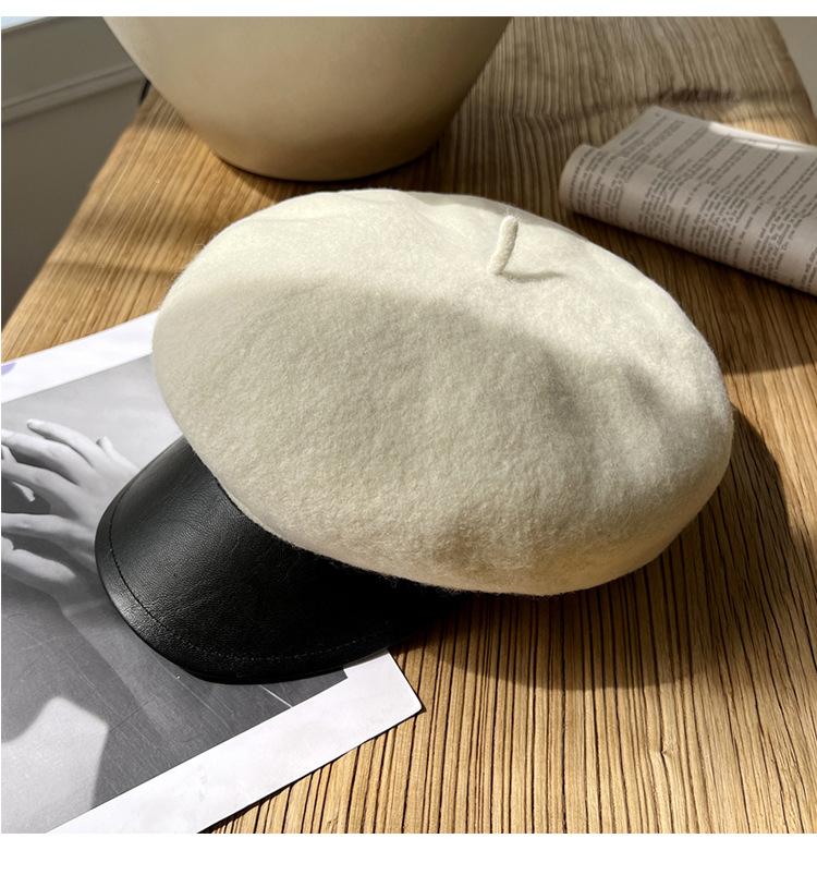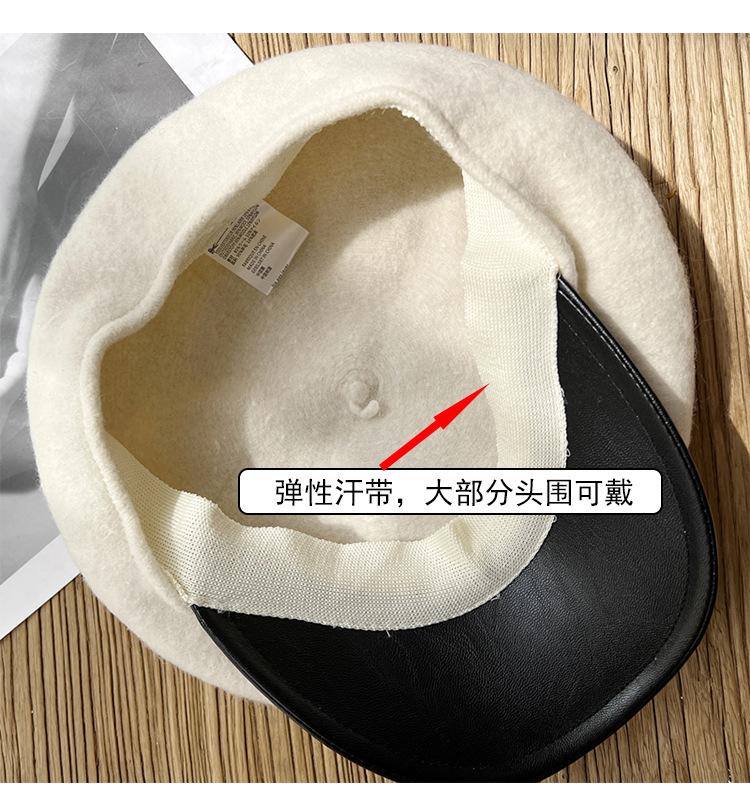 Boina de lana con ala de cuero para mujer, gorro octogonal de lana estilo coreano retro, elegante y sencillo, para otoño e invierno.