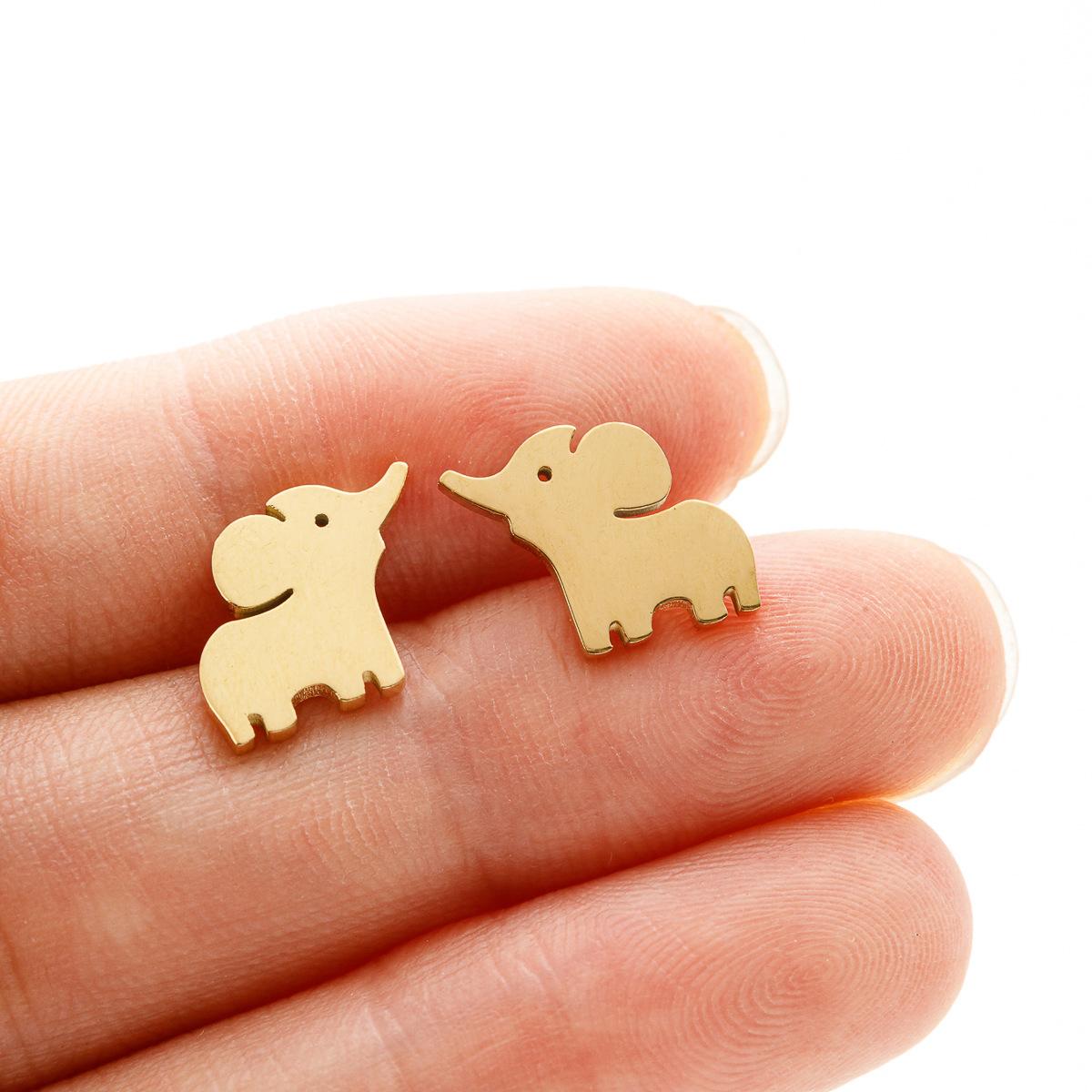 Aretes de Acero Inoxidable Chapados en Oro Real con Aguja de Mini Animalito Lindo Cerdo Delfín Auspicioso Moda Aretes de Metal al Mayoreo