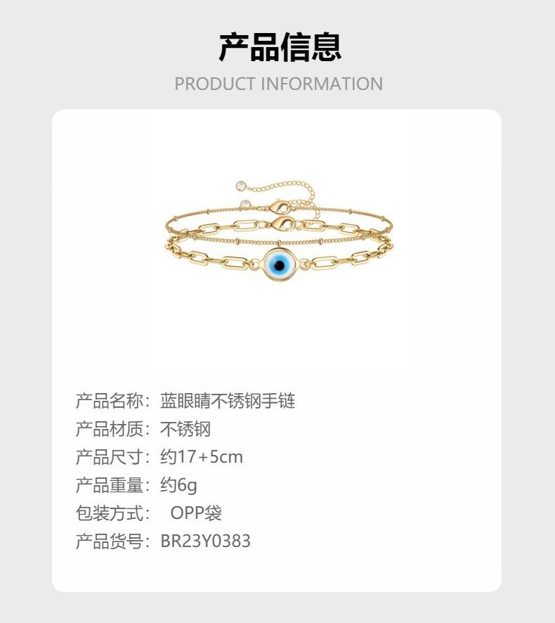 Pulsera de ojo de diablo simple de Turquía transfronteriza con cadena de clip de acero inoxidable y cadena de ojo azul.