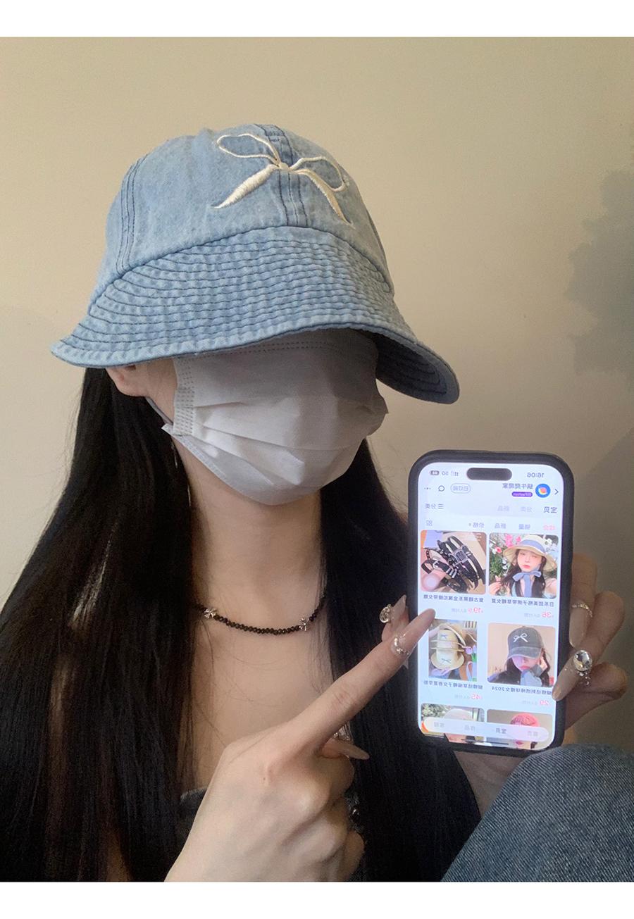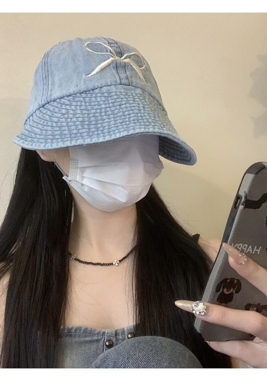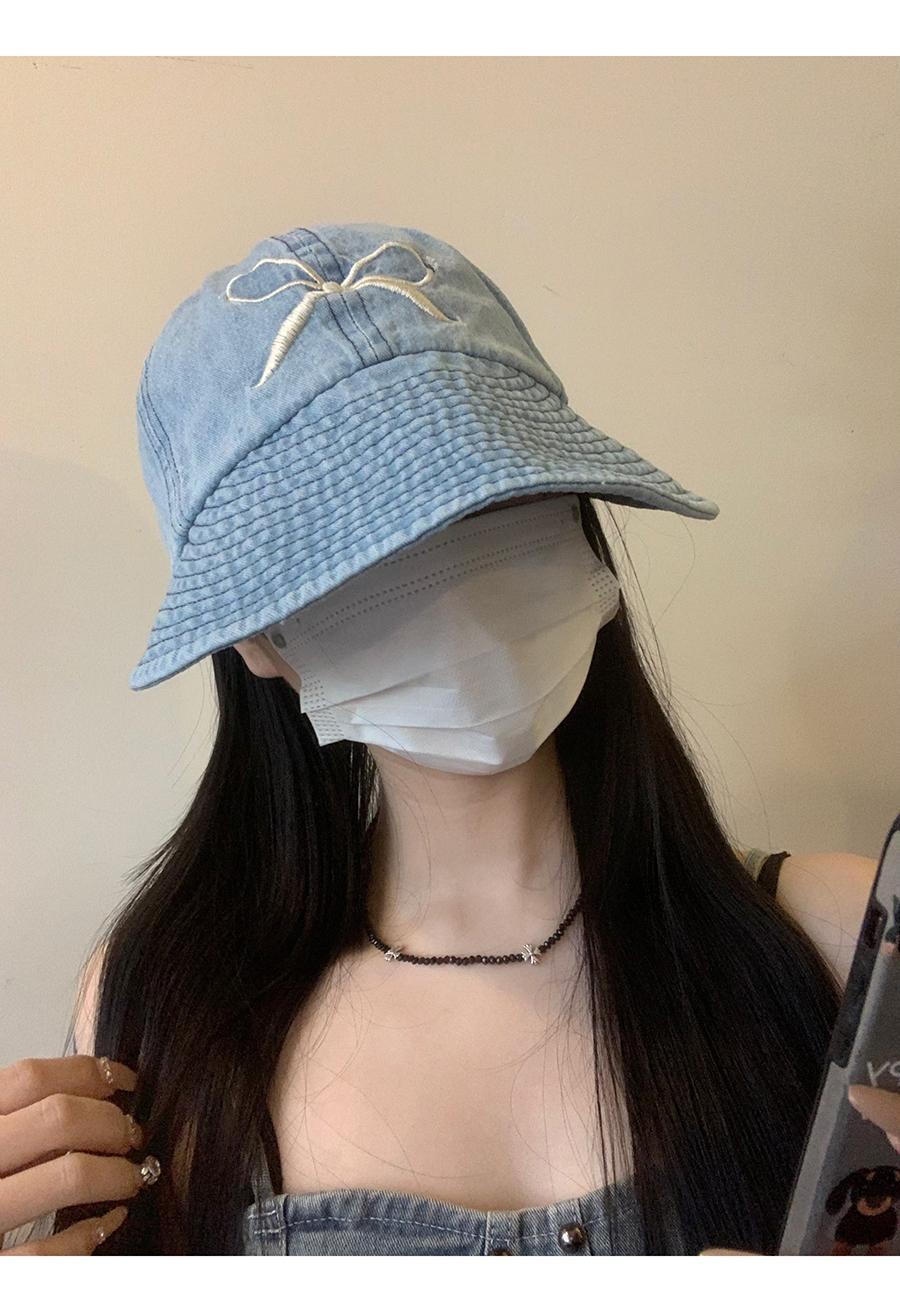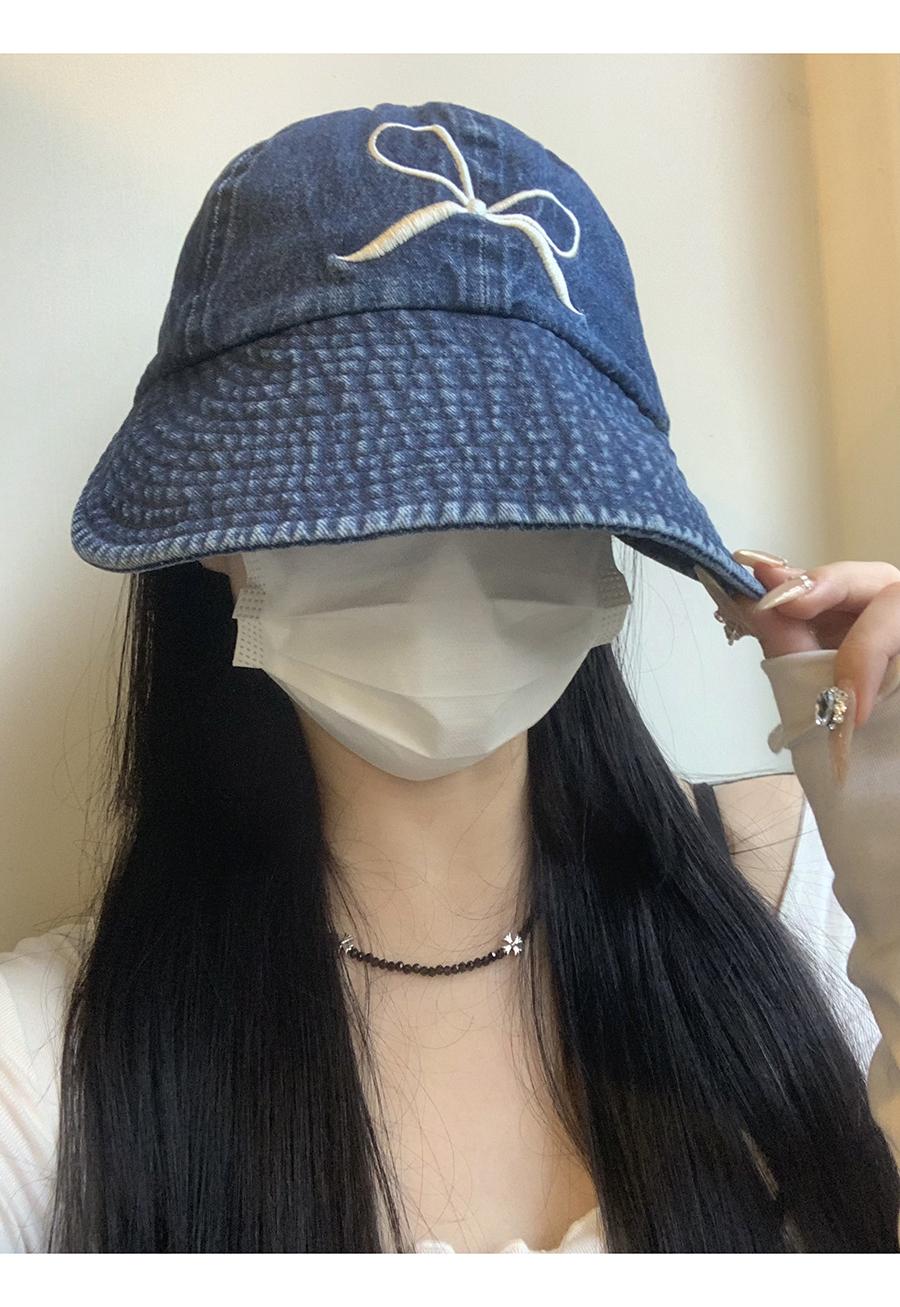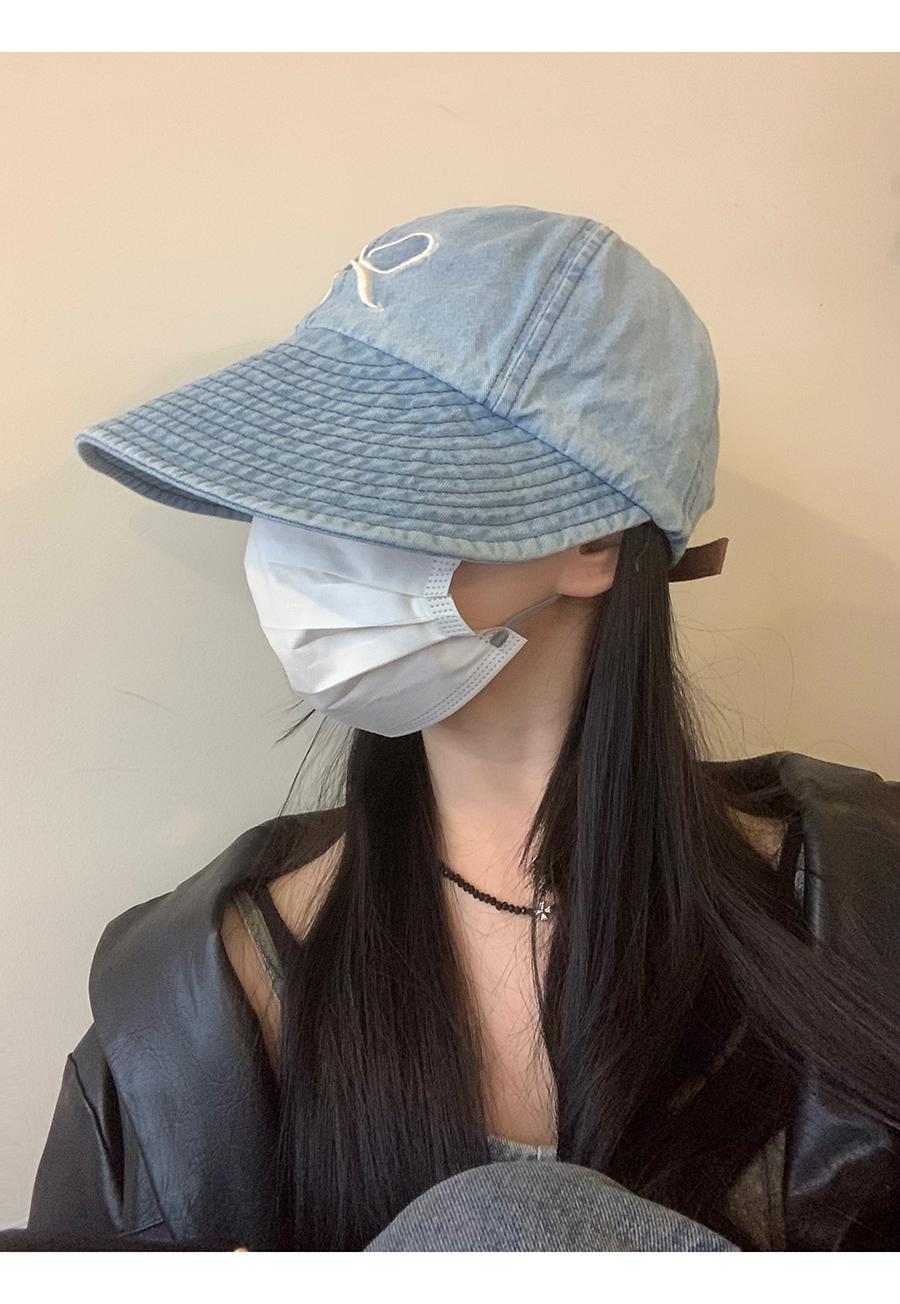 Sombrero de lavabo de ala grande con bordado de lazo para mujer, primavera y verano, nuevo sombrero de pescador de mezclilla, sombrero con visera y protección solar.