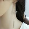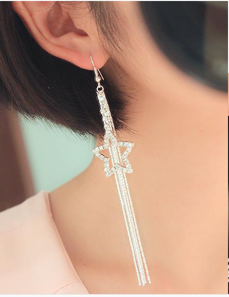 G233 Pendientes coreanos exagerados con borlas de estrella de cinco puntas, pendientes de alambre con diamantes de imitación ultra largos, venta al por mayor para mujeres