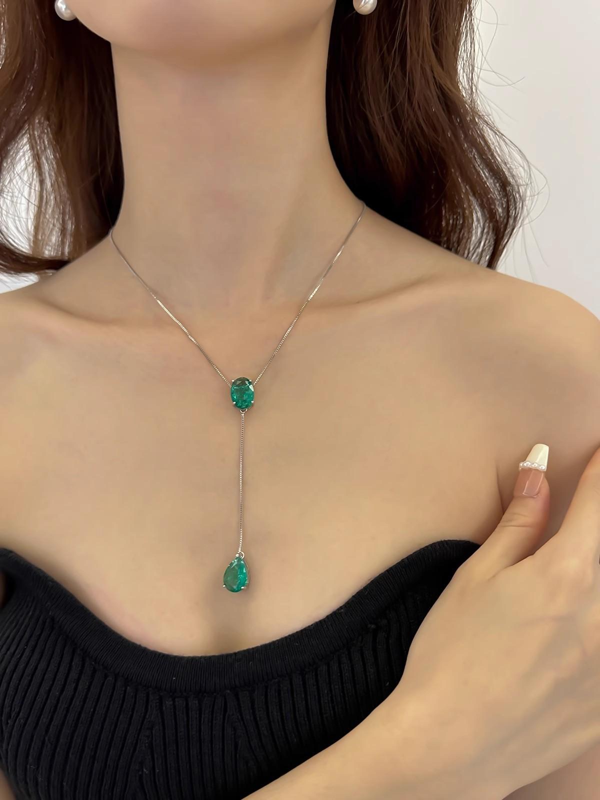 Joyería Sense de Alta Gama Esmeralda Blanca Diseño Nicho de Lujo Ligero Sentido del Diseño Collar Ajustable Moderno Colgante Largo Cadena Clavícula para Mujer