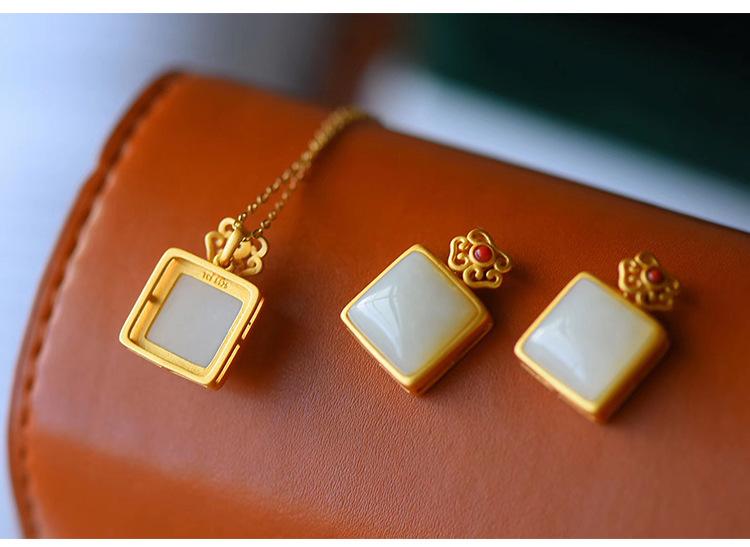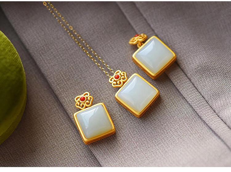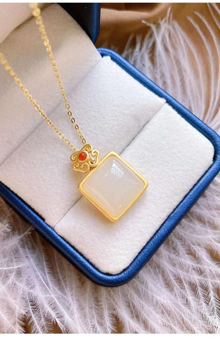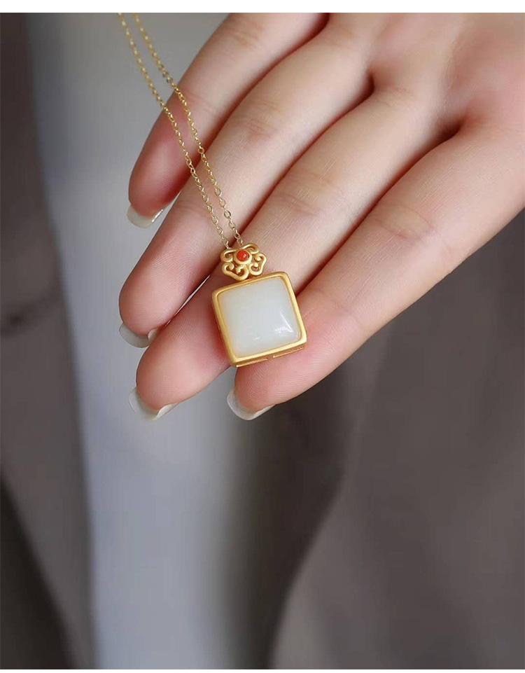 Compra Collar de jade hetiano de imitación de oro antiguo para mujer, colgante cuadrado pequeño de marca, estilo étnico chino clásico retro para mujer al por mayor en Joom.pro