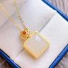Collar de jade hetiano de imitación de oro antiguo para mujer, colgante cuadrado pequeño de marca, estilo étnico chino clásico retro para mujer