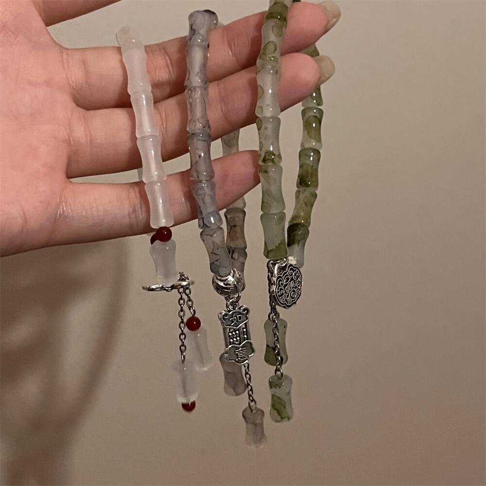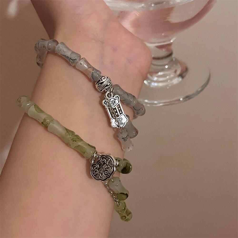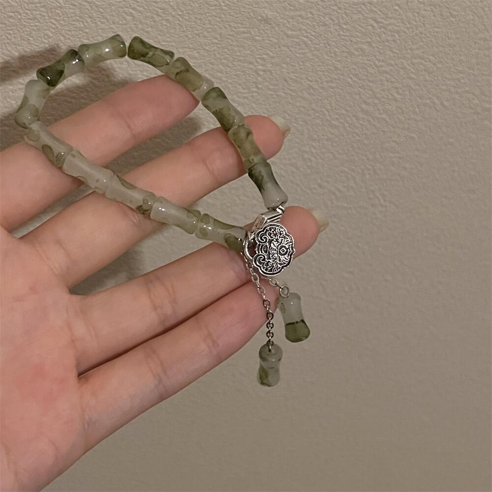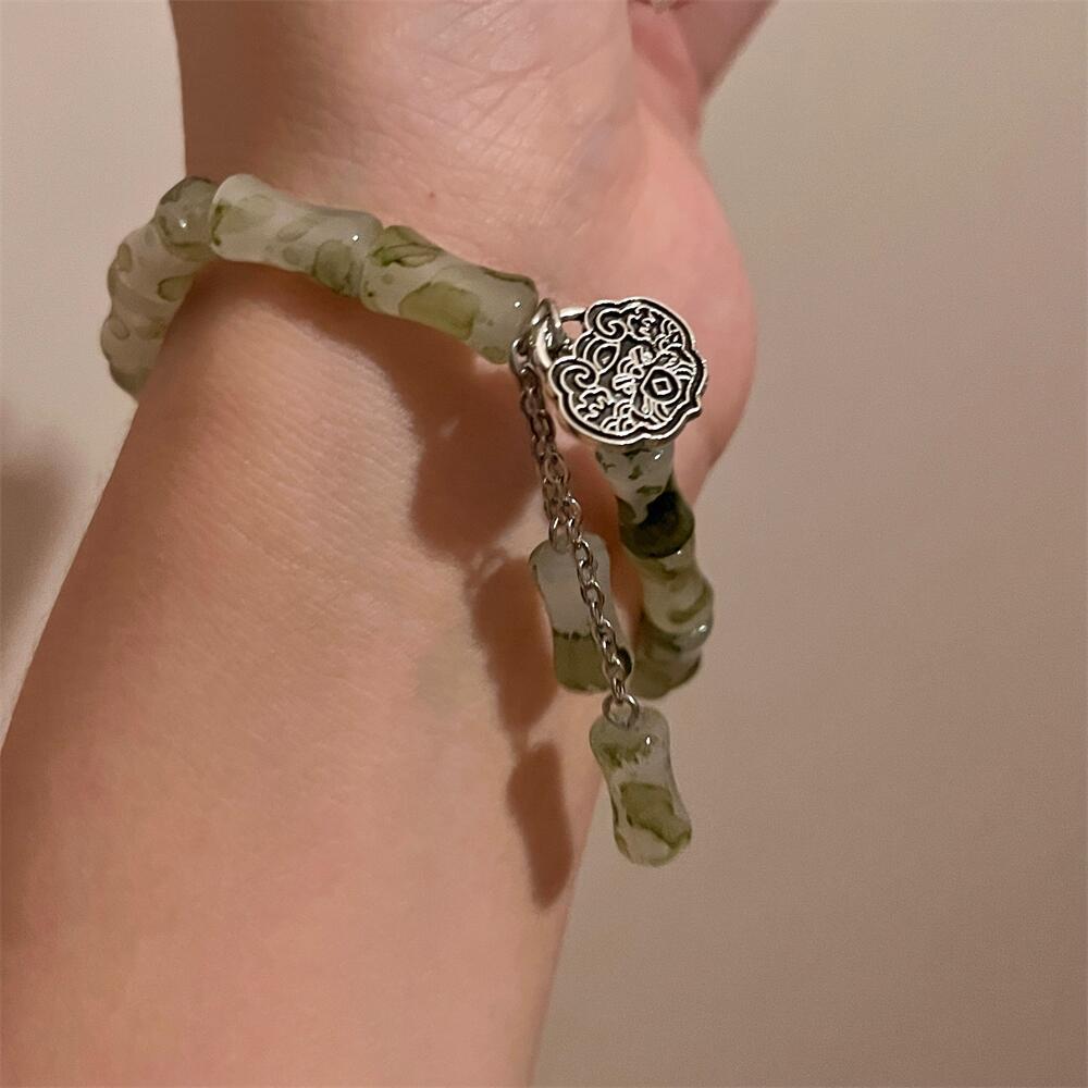 Nueva pulsera de la suerte de estilo chino con diseño de bambú verde alto para festivales, pulsera artística elástica con cuentas y nicho para mujer
