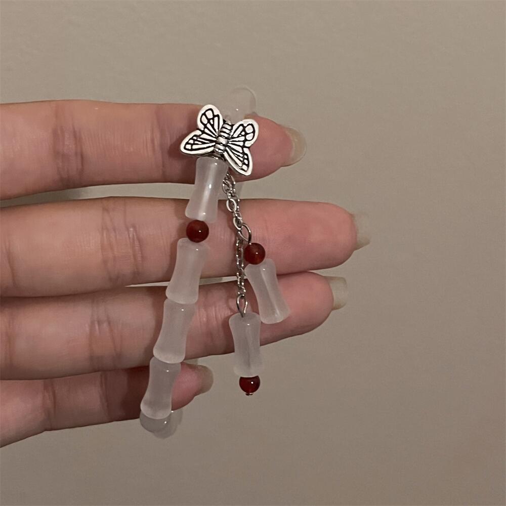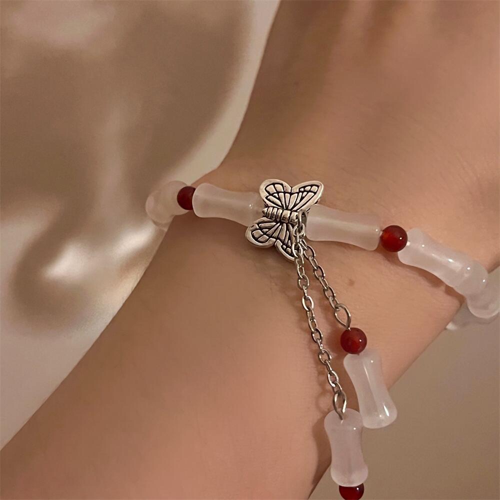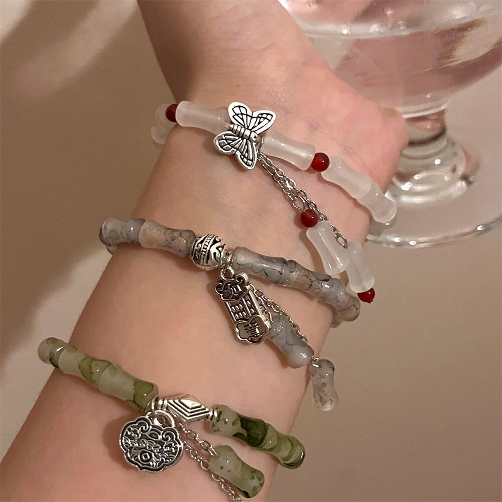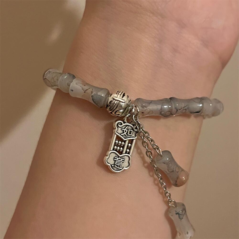 Nueva pulsera de la suerte de estilo chino con diseño de bambú verde alto para festivales, pulsera artística elástica con cuentas y nicho para mujer