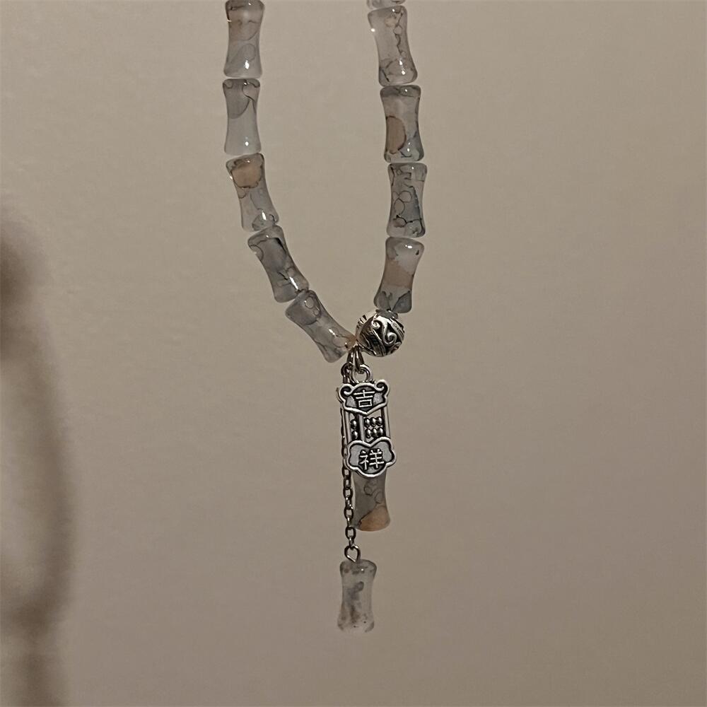 Compra Nueva pulsera de la suerte de estilo chino con diseño de bambú verde alto para festivales, pulsera artística elástica con cuentas y nicho para mujer al por mayor en Joom.pro