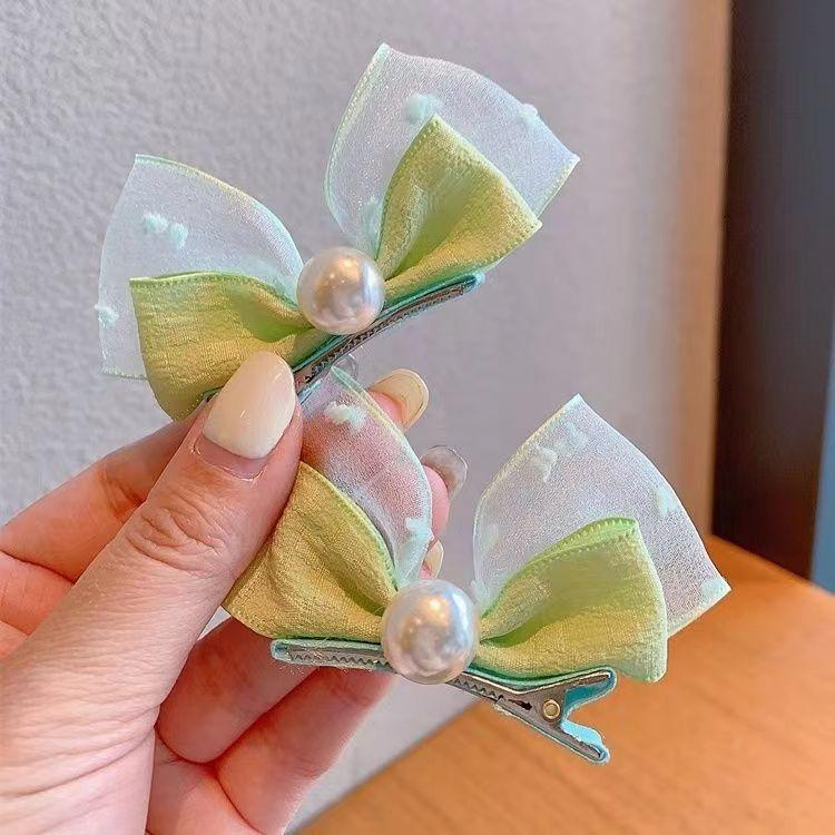 Clip para niña, dulce, con lazo tridimensional de perlas, para flequillo de bebé, lado roto
