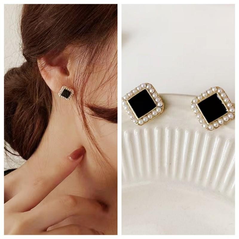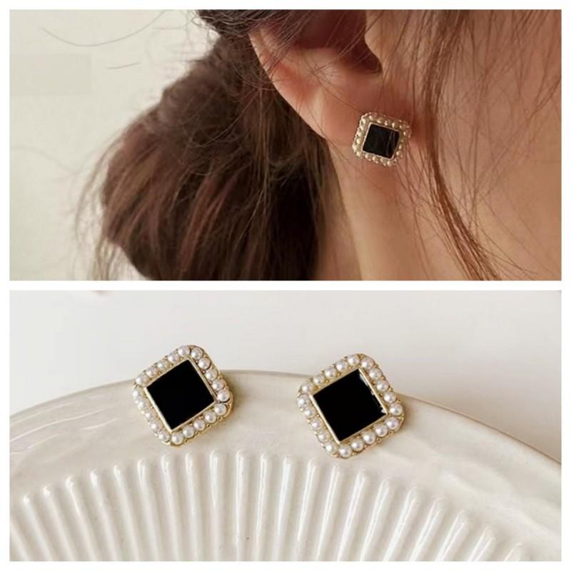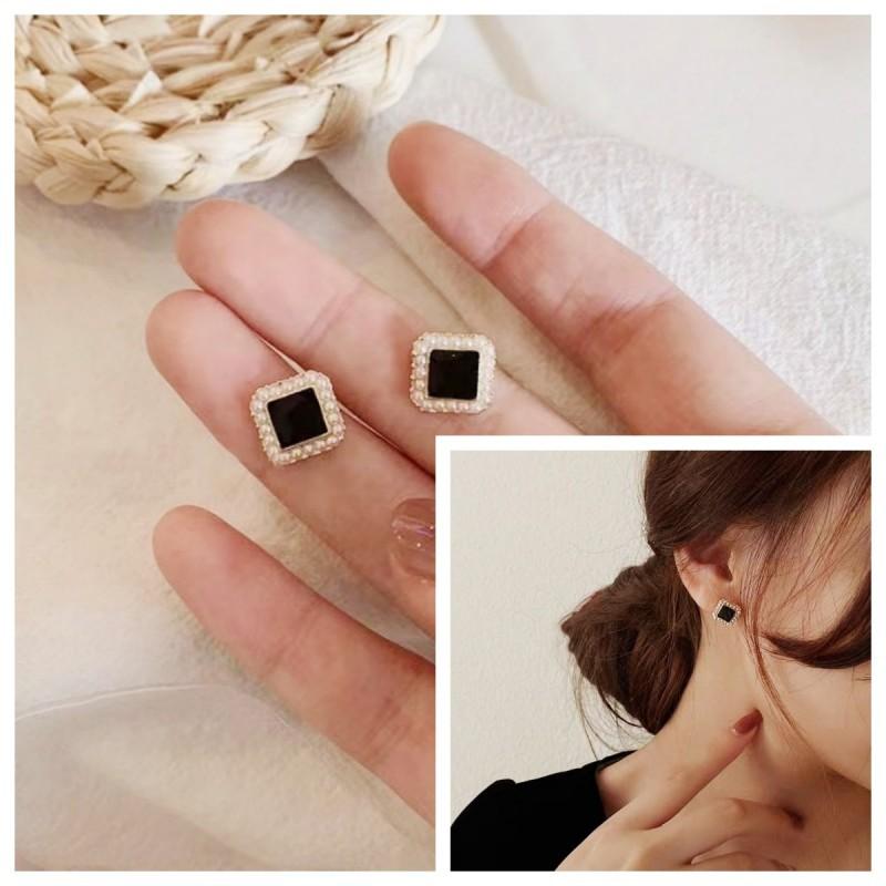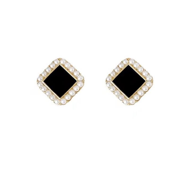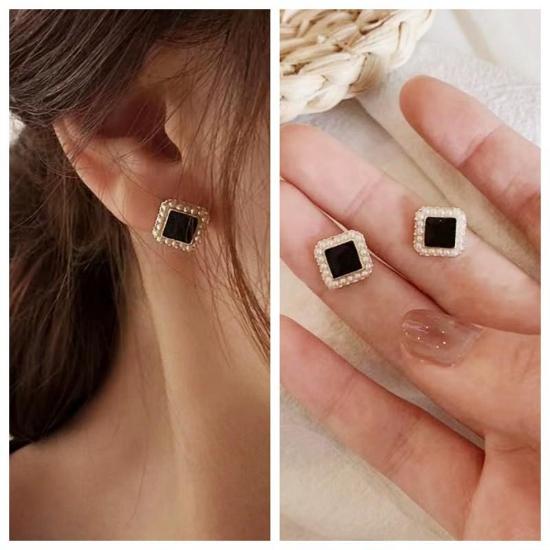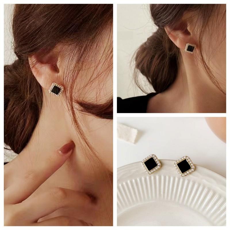 Compra Pendientes de perlas cuadradas negras, ligeros, de lujo, sencillos, pequeños y exquisitos, de diseño de alta gama para mujer, con sensación de viento frío. al por mayor en Joom.pro