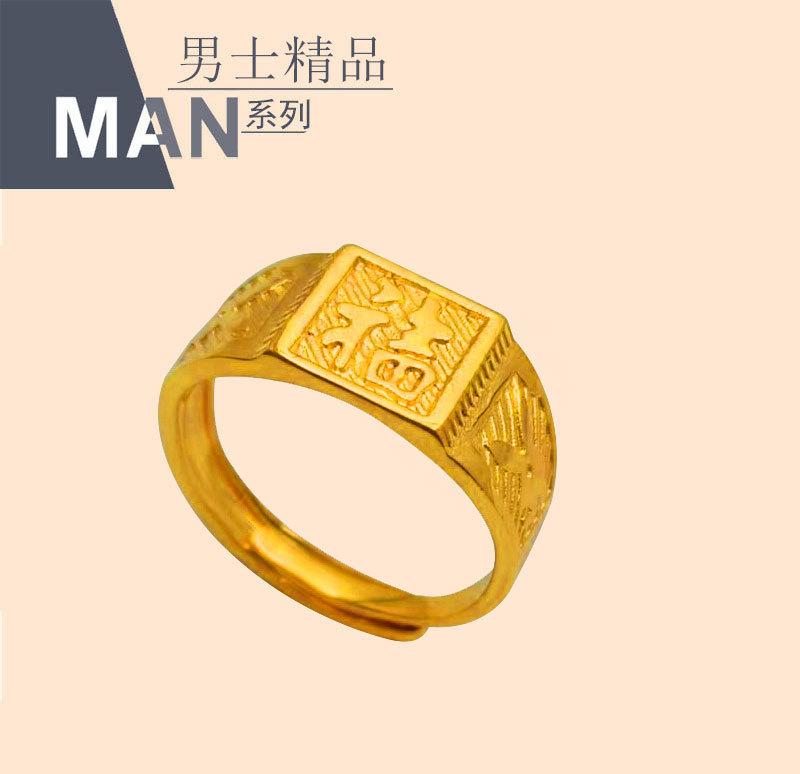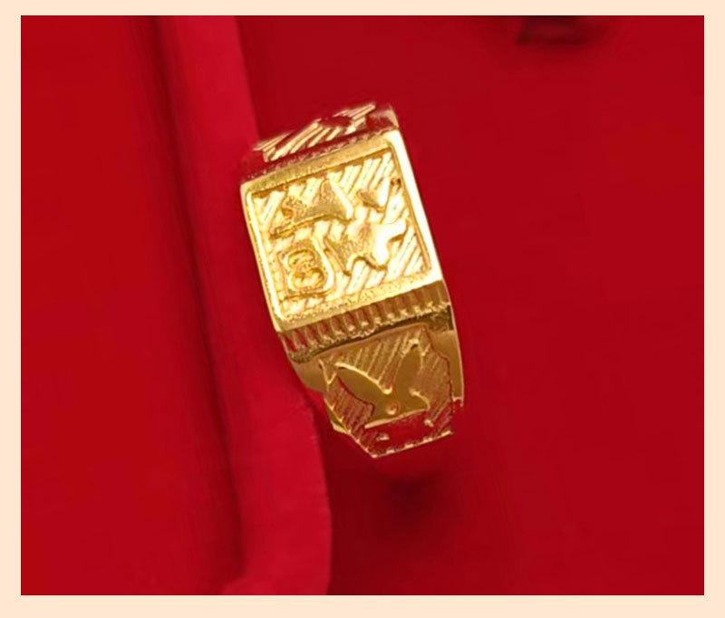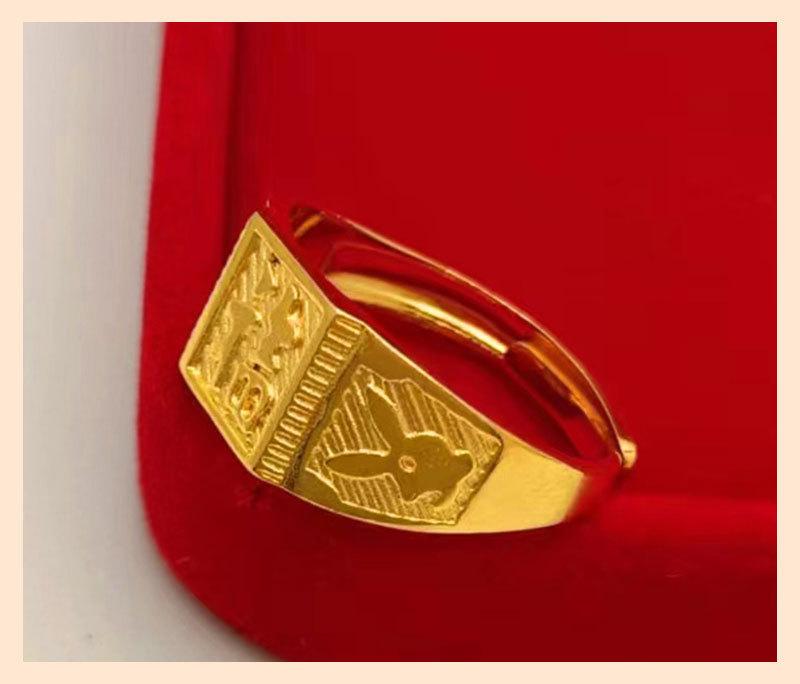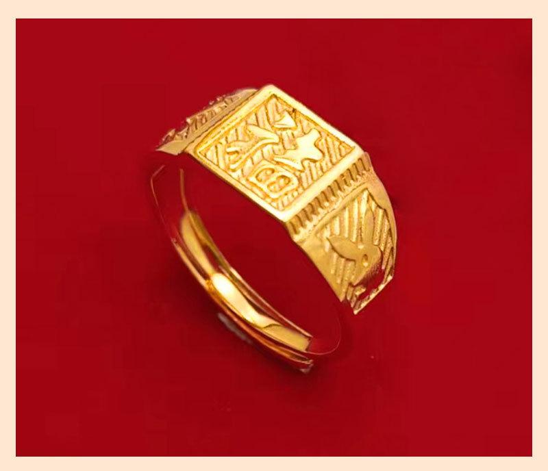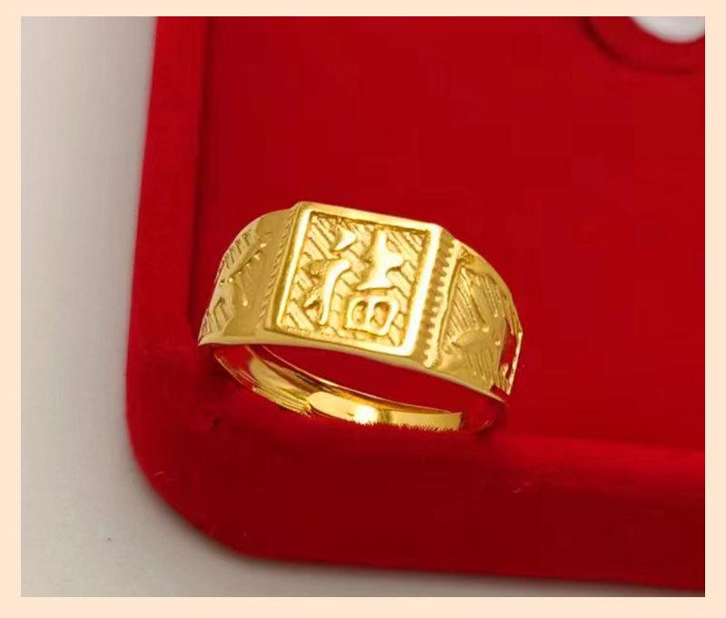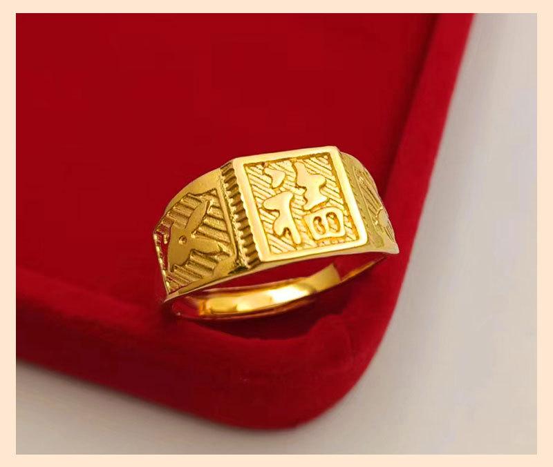 Anillo de dedo para hombre de cobre chapado en oro de moda chapado en oro de 18k con palabra Jinfu y flor de coche, oro Tuhao, boca viva, joyería electrochapada con moneda europea