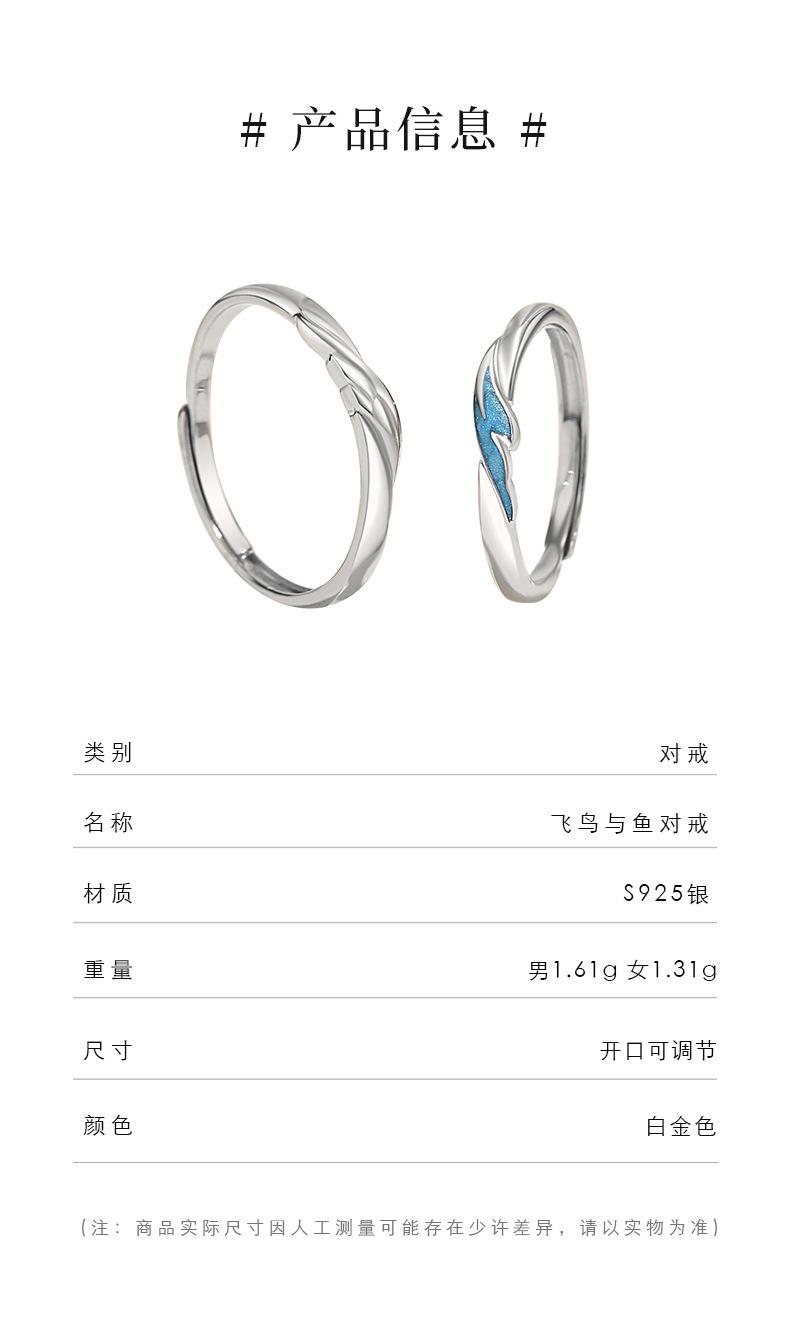 Anillo original de pareja de pájaros y peces, para hombre y mujer, estilo coreano, diseño de nicho simple, regalo de San Valentín Tanabata.