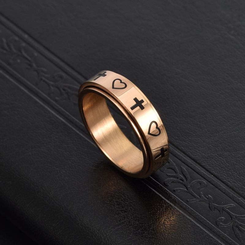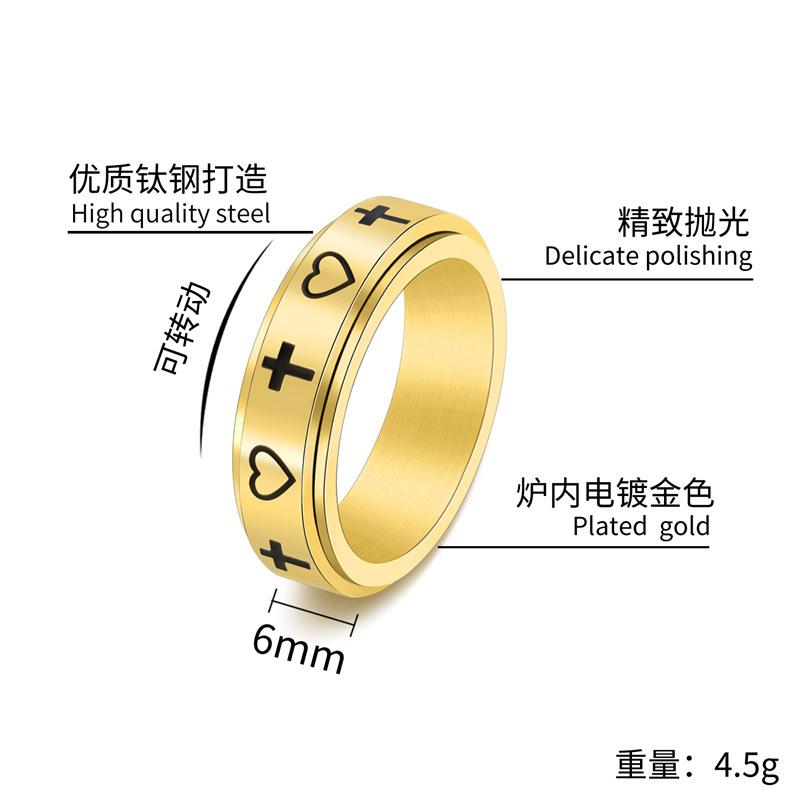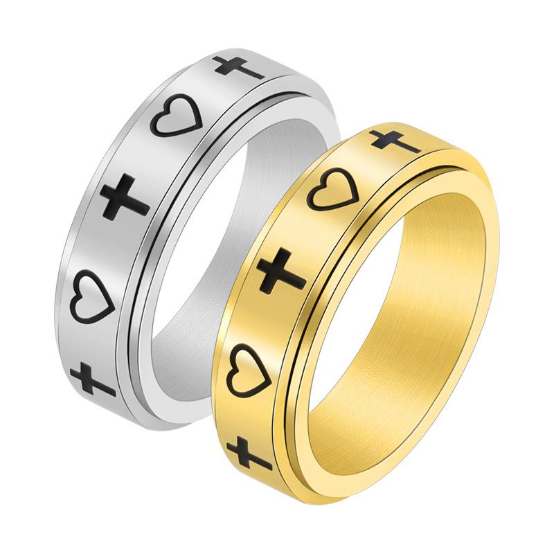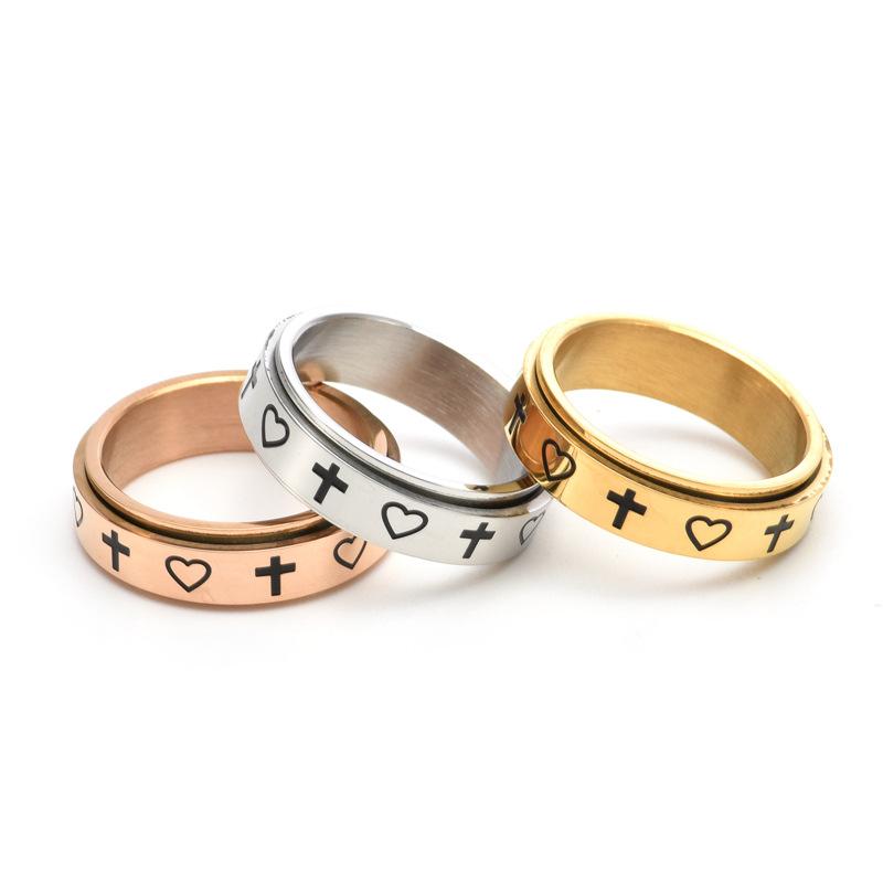 Cross-border e-commerce source new creative cross love rotatable ring stainless steel cold wind jewelry wholesale
