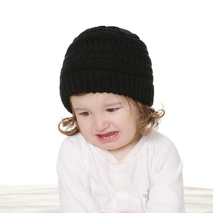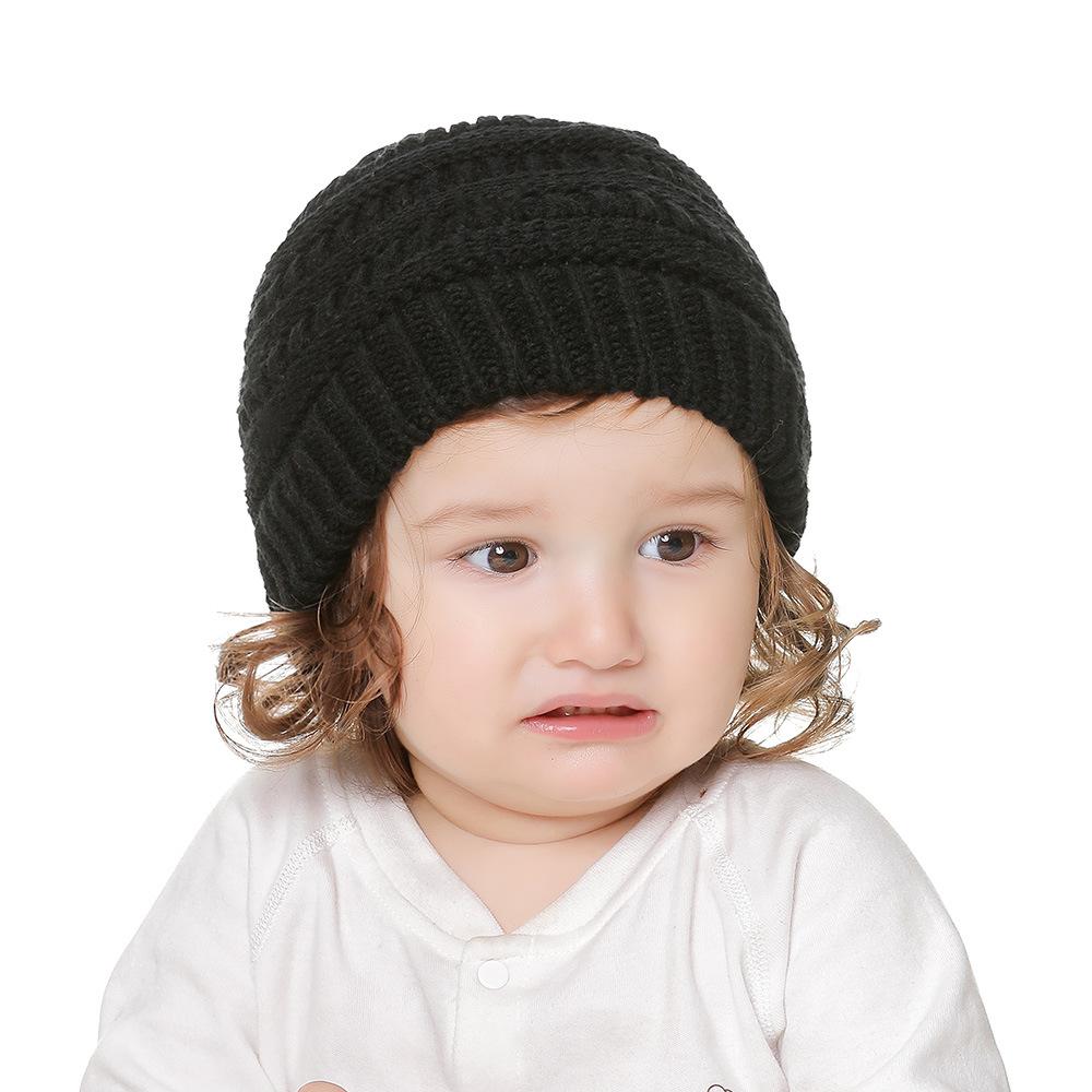 Gorro de bebé de otoño e invierno 2022, nuevo gorro de punto grueso y cálido de doble capa europeo y americano para bebé, gorro de jersey de bola de lana doble