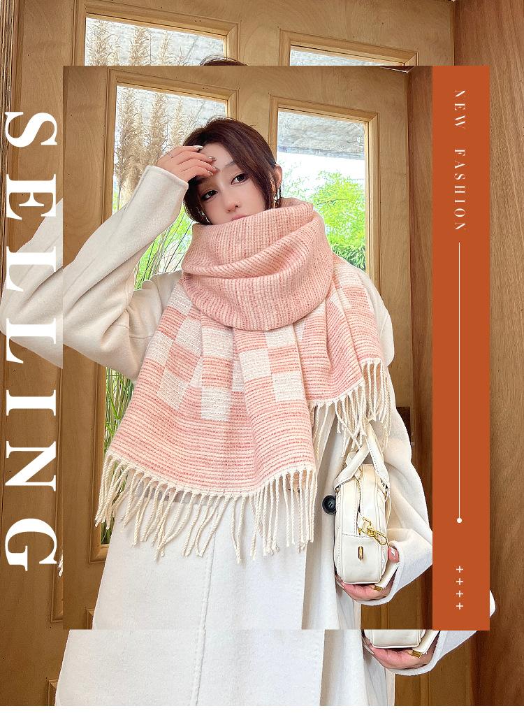 Nueva bufanda de cachemira sencilla para mujer, suave y cómoda, estilo coreano, estilo Chanel, cálido y largo chal de barba.