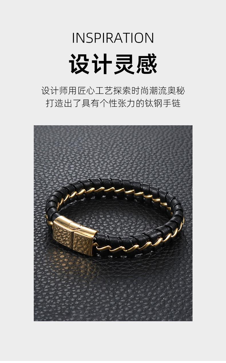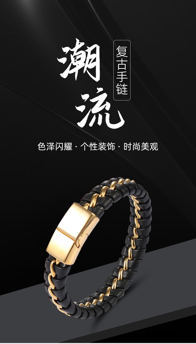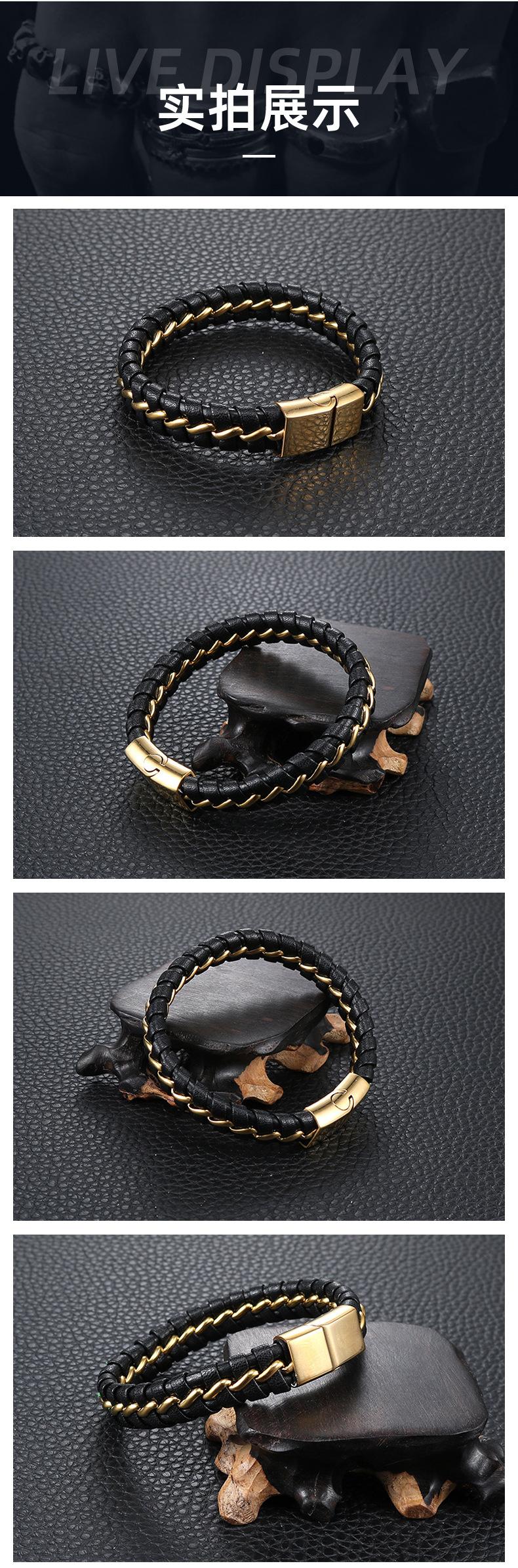 Pulsera de cuerda de cuero para hombre, estilo punk europeo y americano, con personalidad retro, de acero inoxidable, joyería al por mayor HL076