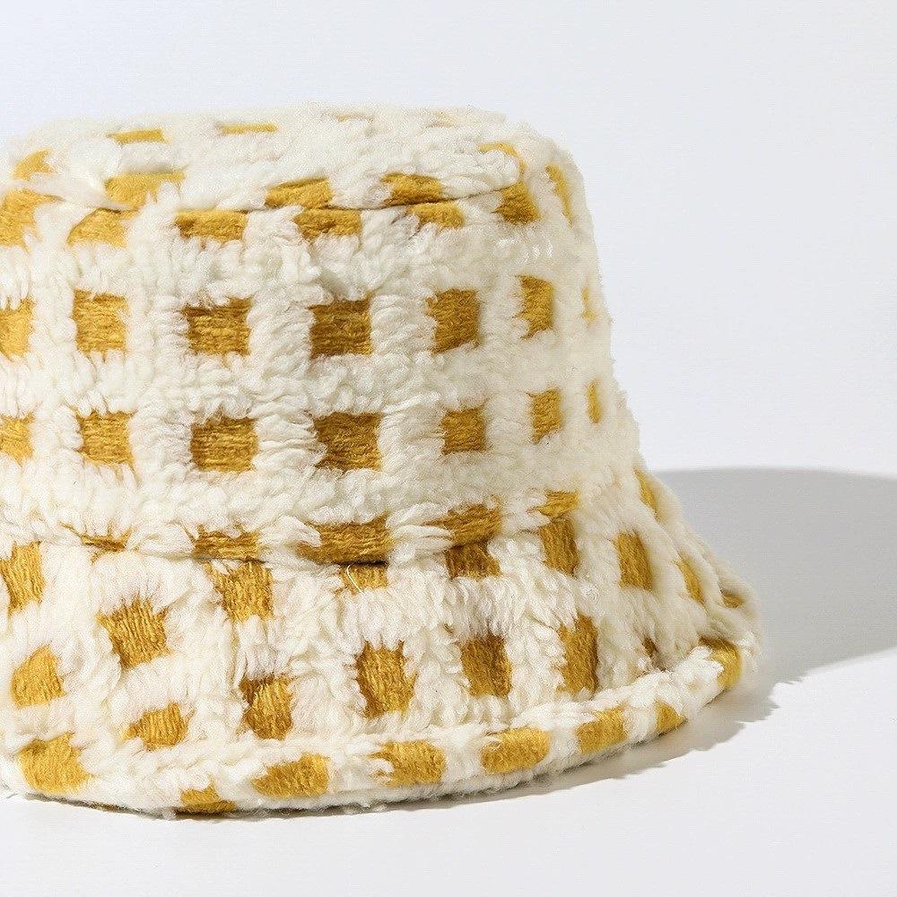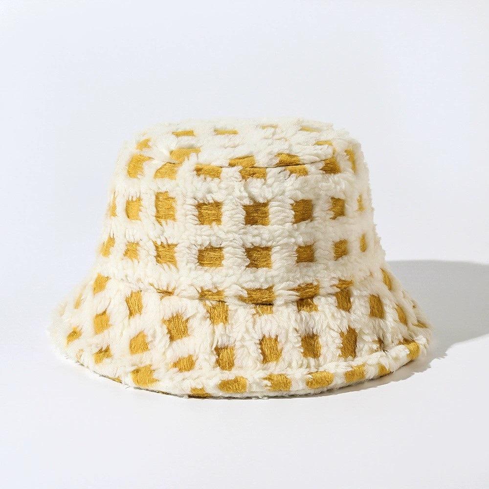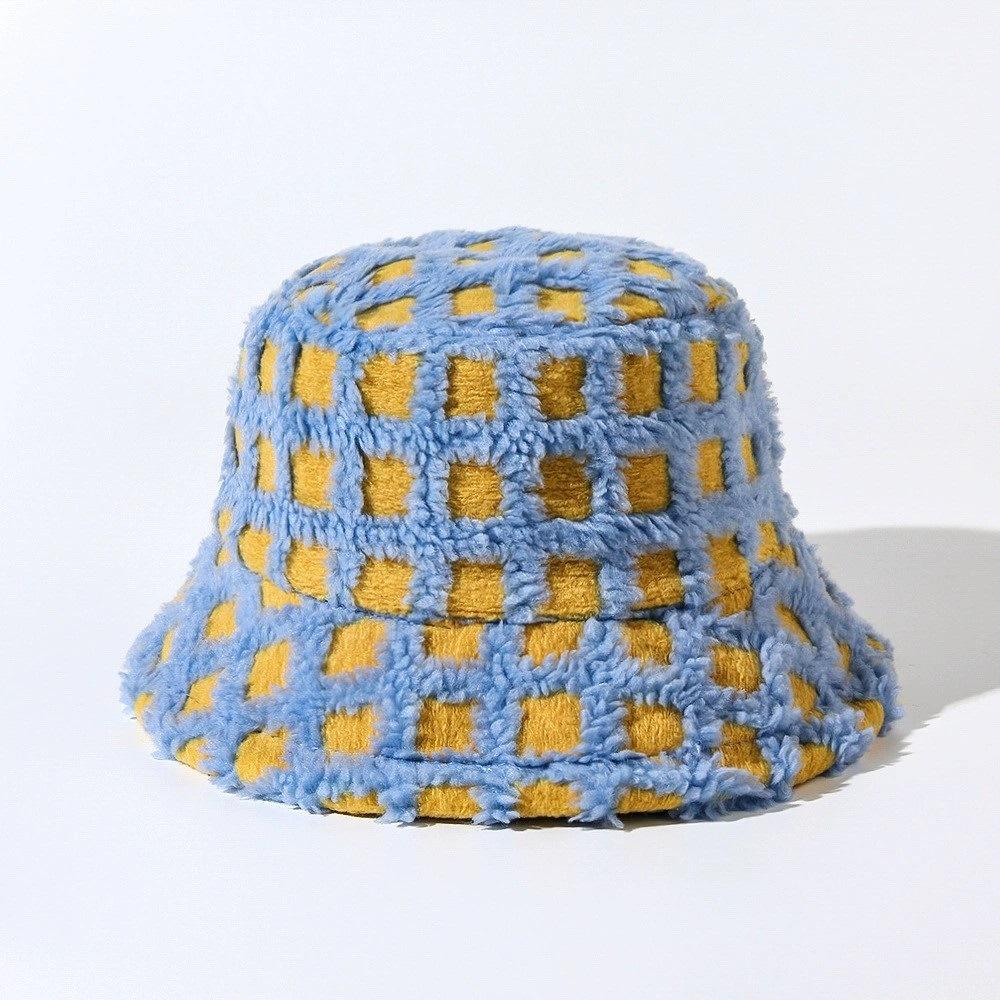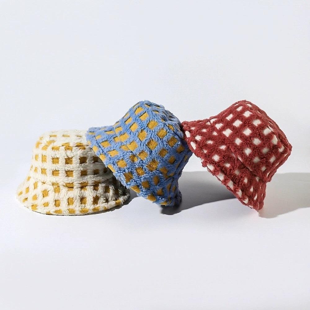 Otoño e Invierno engrosado colorido fresco de alta calidad a cuadros estilo coreano color contrastante que hace ver el rostro pequeño sombrero de pescador moderno para combinar con todo