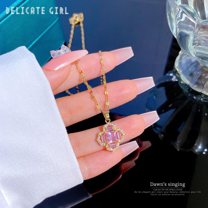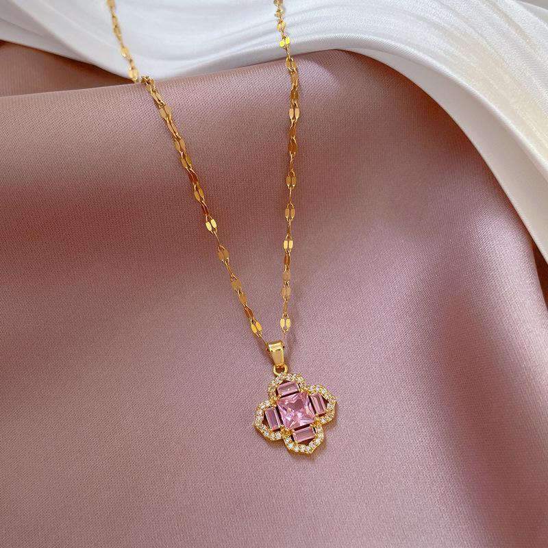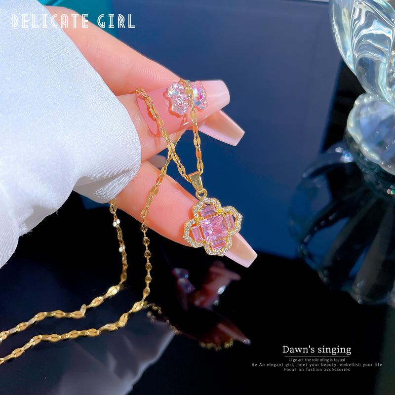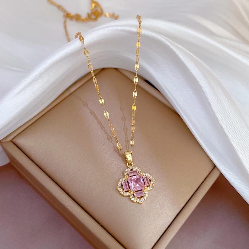 [Acero de Titanio] Lujo Ligero Flor de Diamantes Completos Micro-Incrustados Oro Real Collar de Cuentas de Transferencia para Mujer Accesorios de Cadena para Clavícula Populares Ins