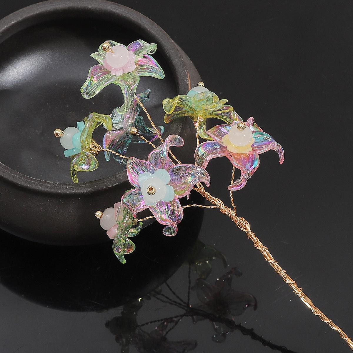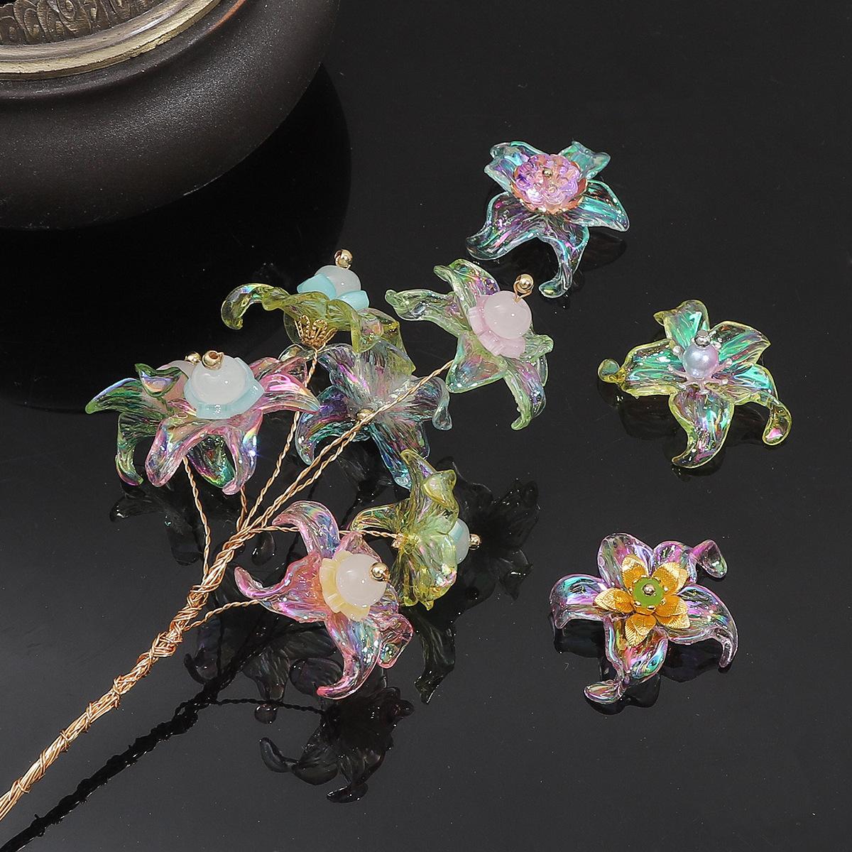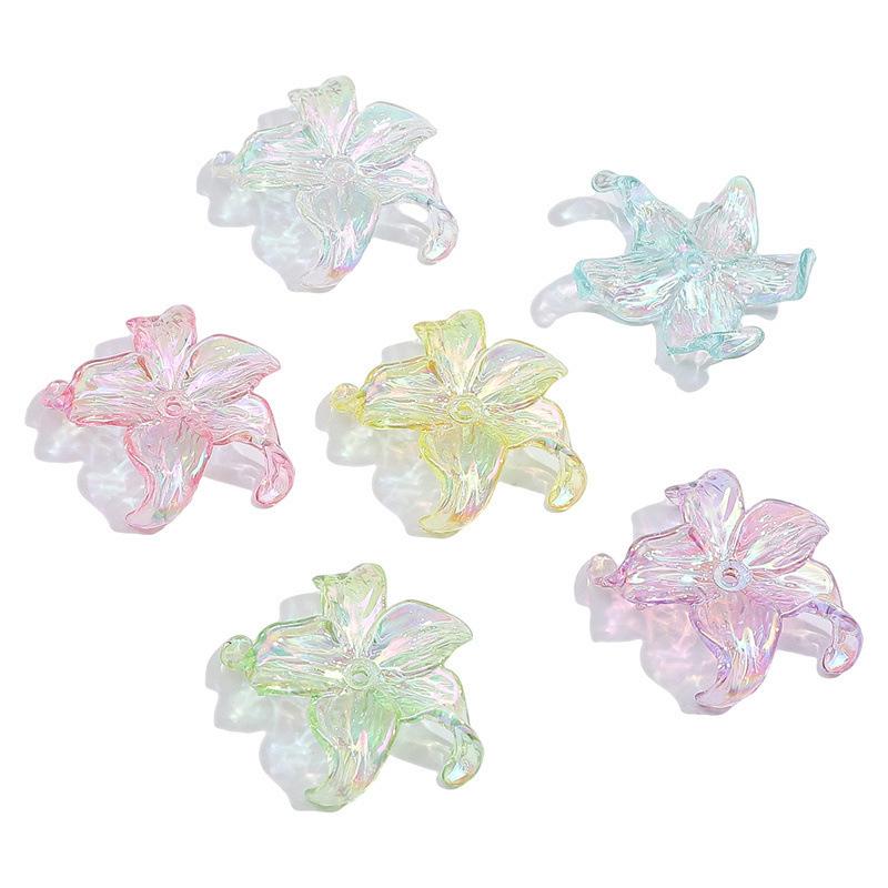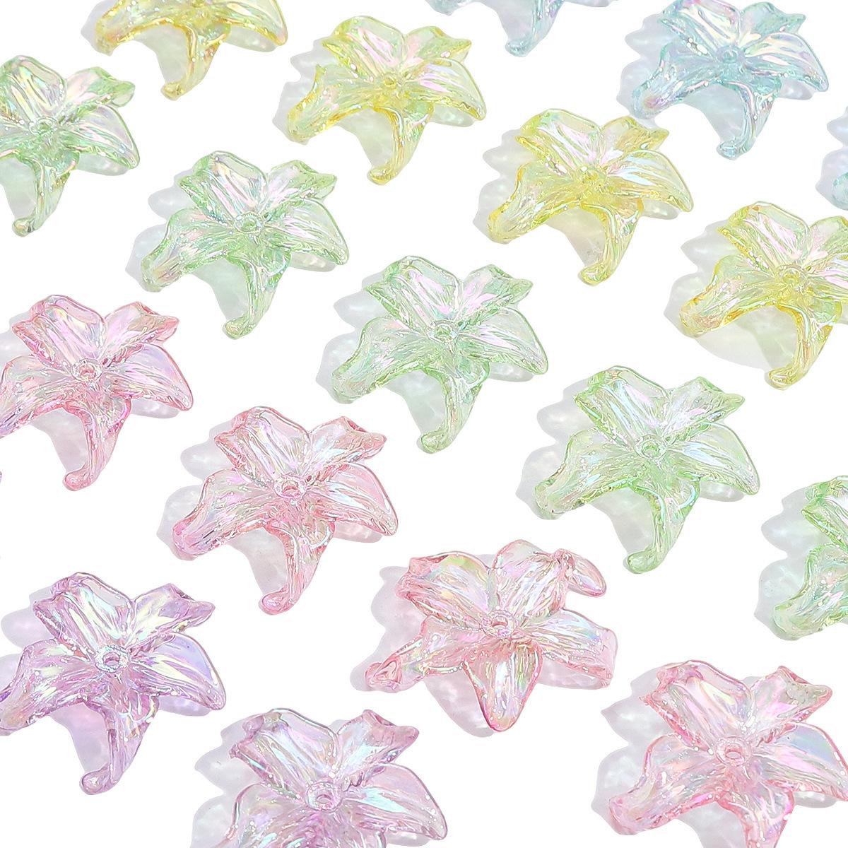Cuentas acrílicas chapadas en color AB, flor de cinco pétalos, hechas a mano, cuentas sueltas para bricolaje, joyería, colgante, pulsera, cuentas sueltas, accesorios, material
