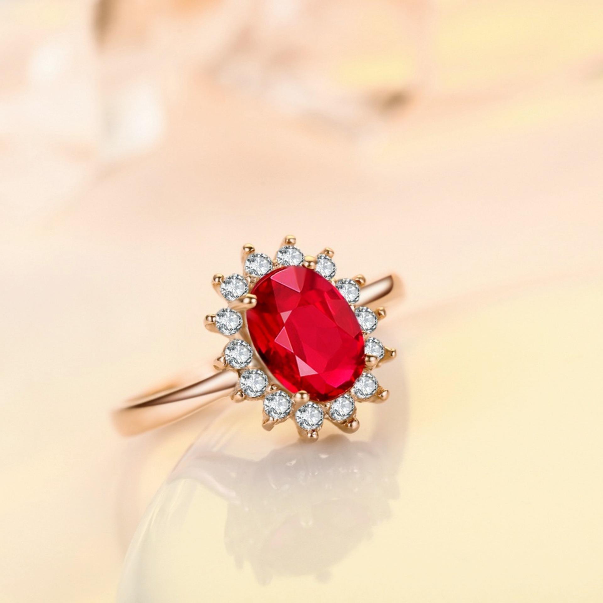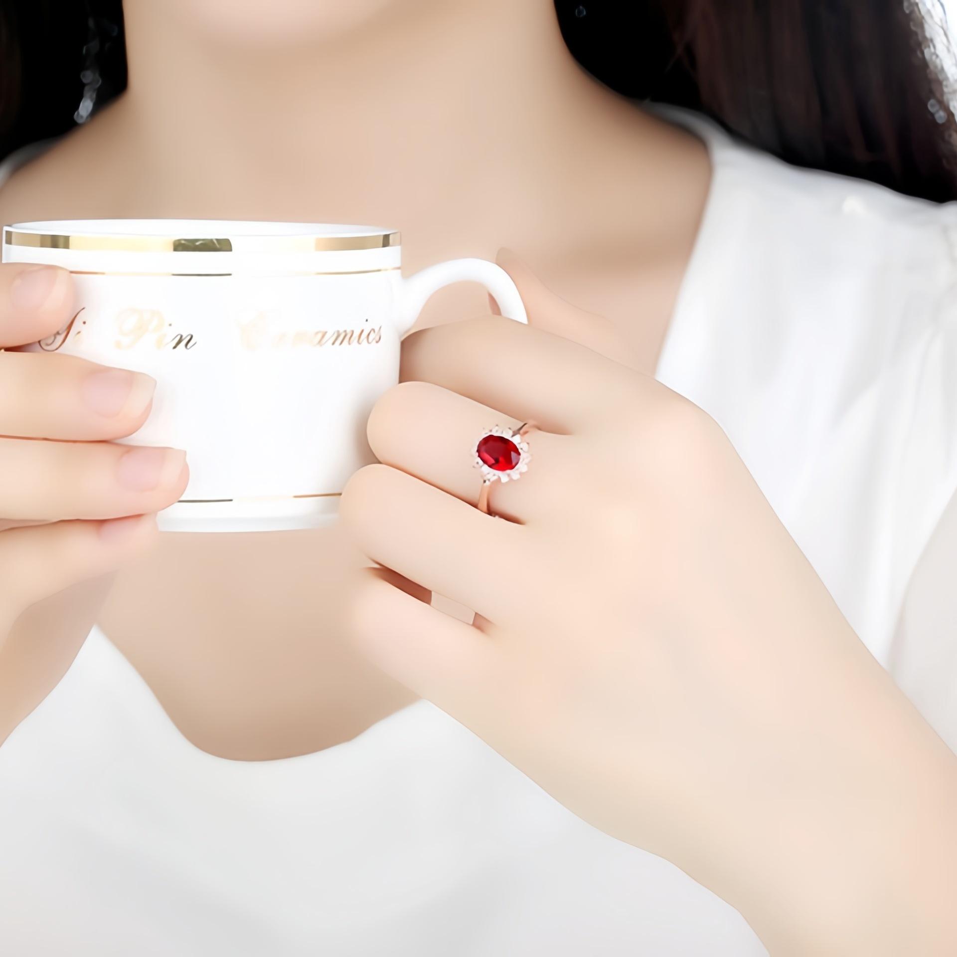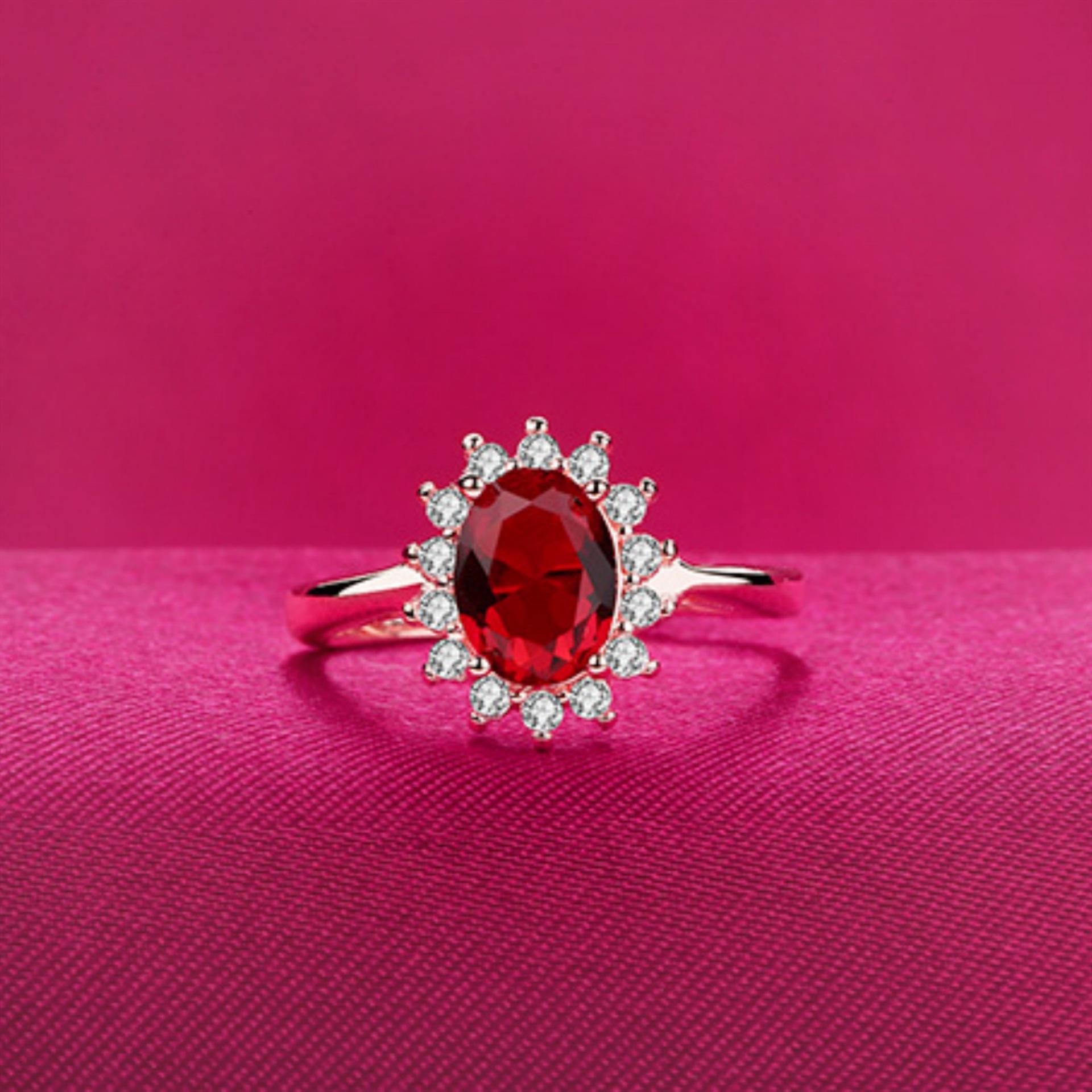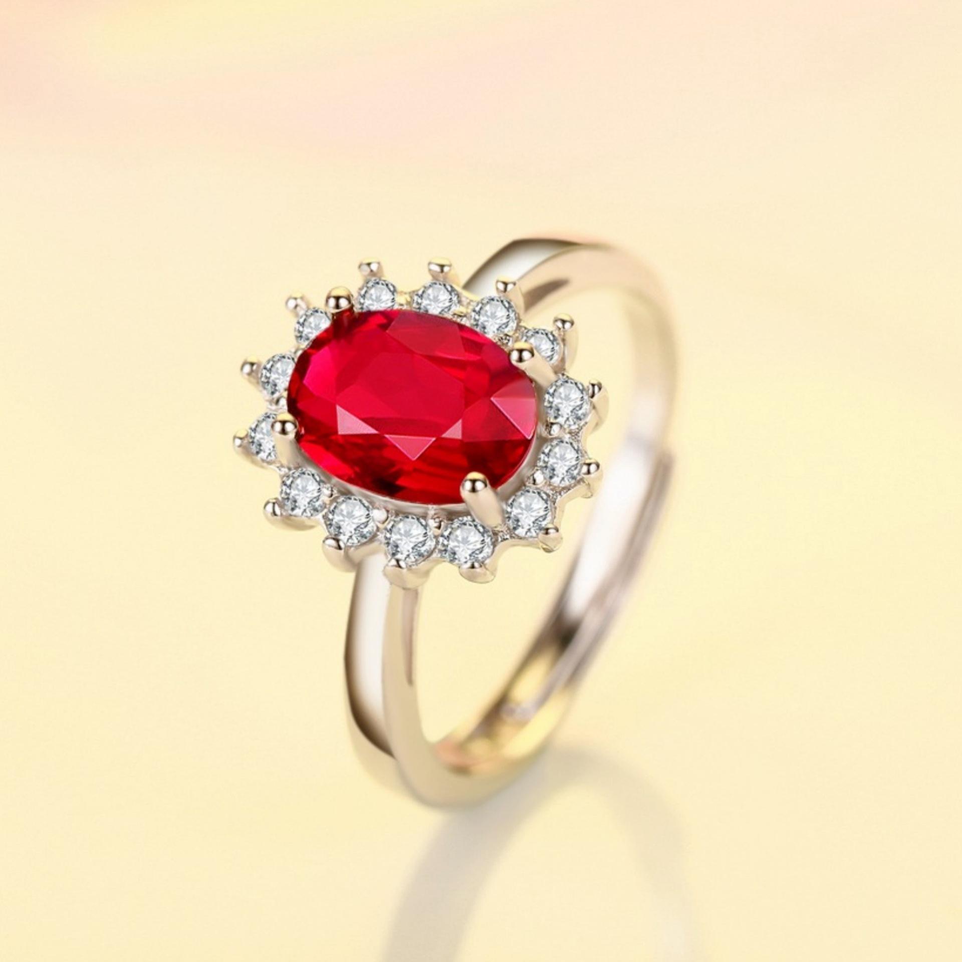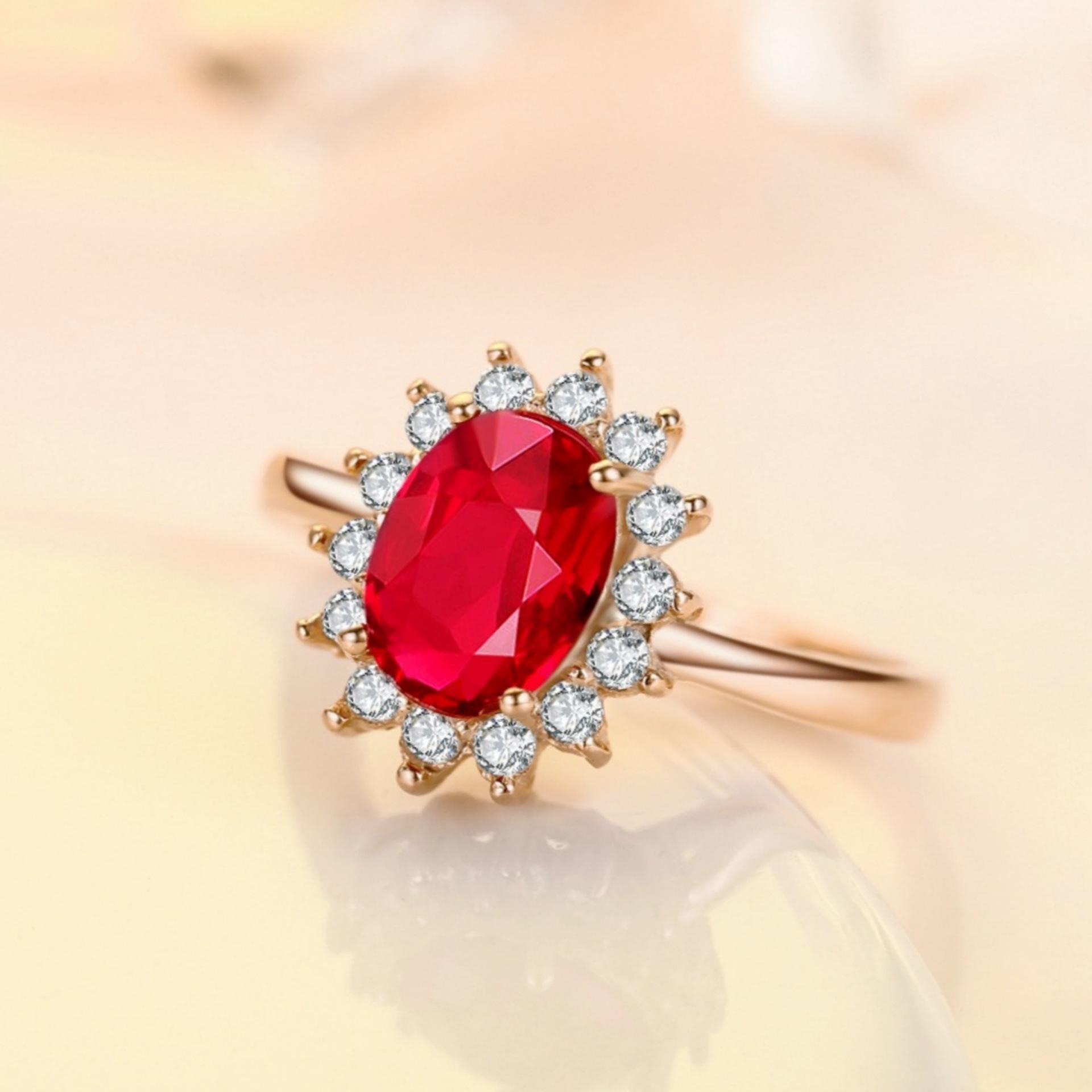 Anillo Abierto de Girasol Estilo Coreano para Pareja Anillo de Flor Floreciente Anillo para Dedo Índice Estilo Europeo y Americano Anillo de Diamante Rojo Venta al por Mayor