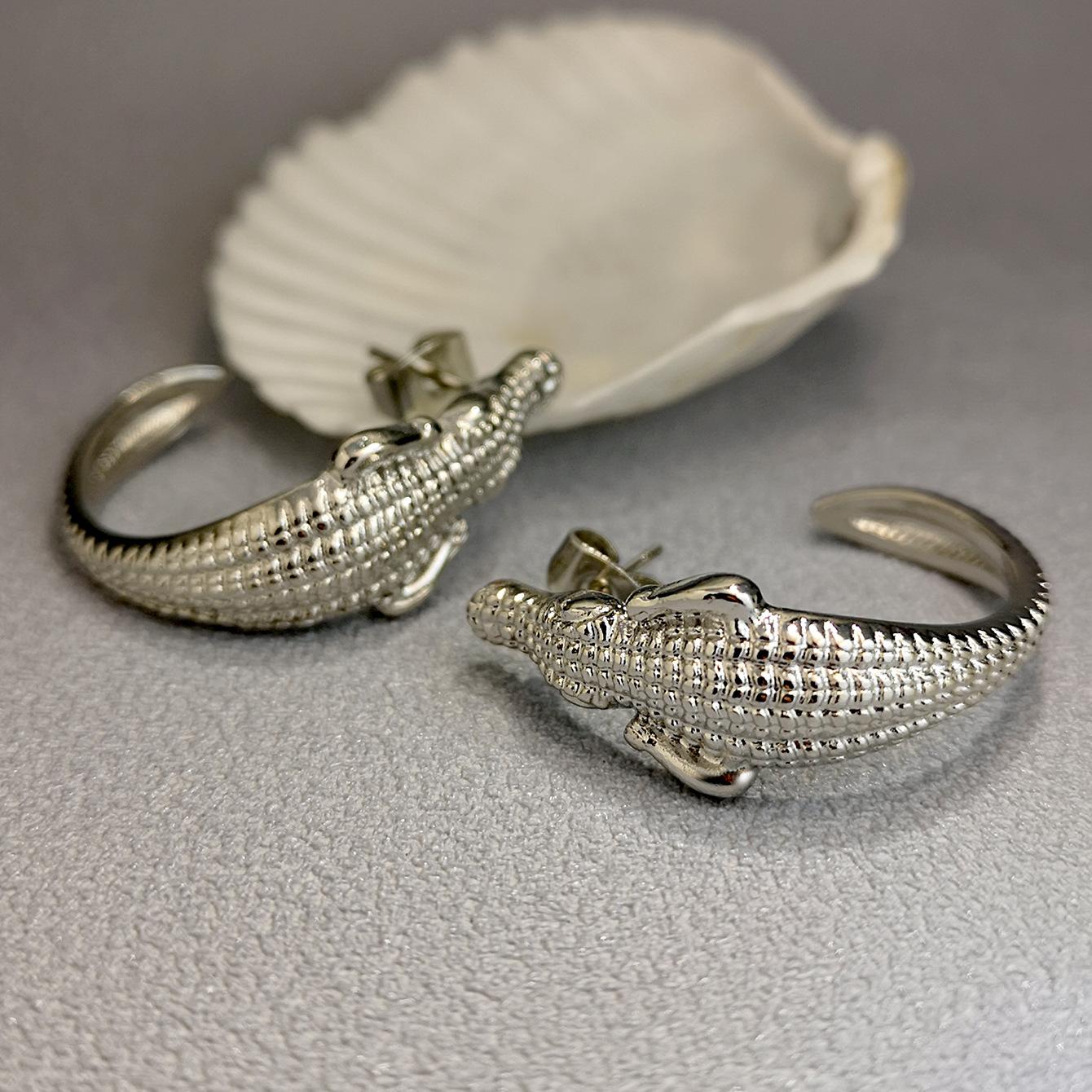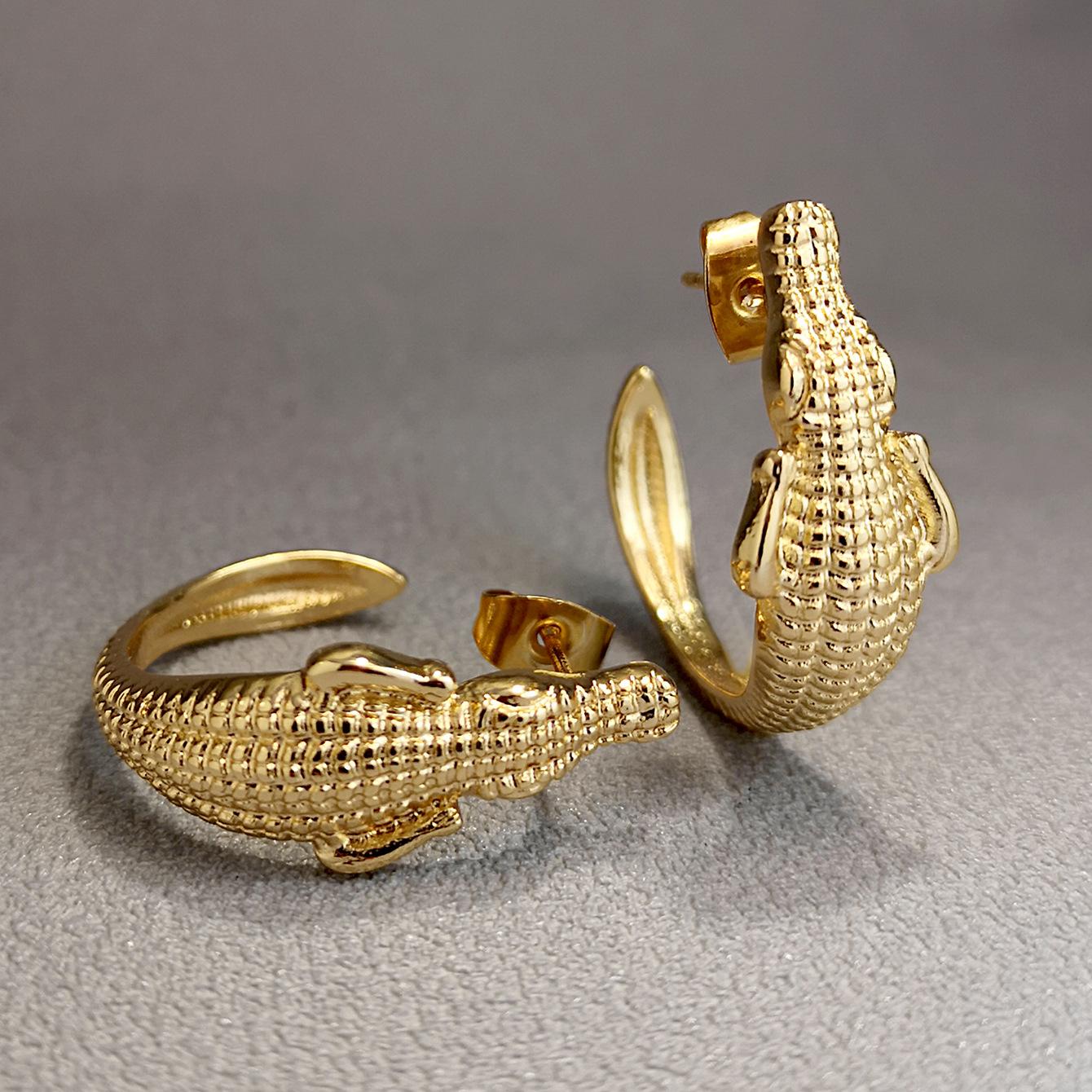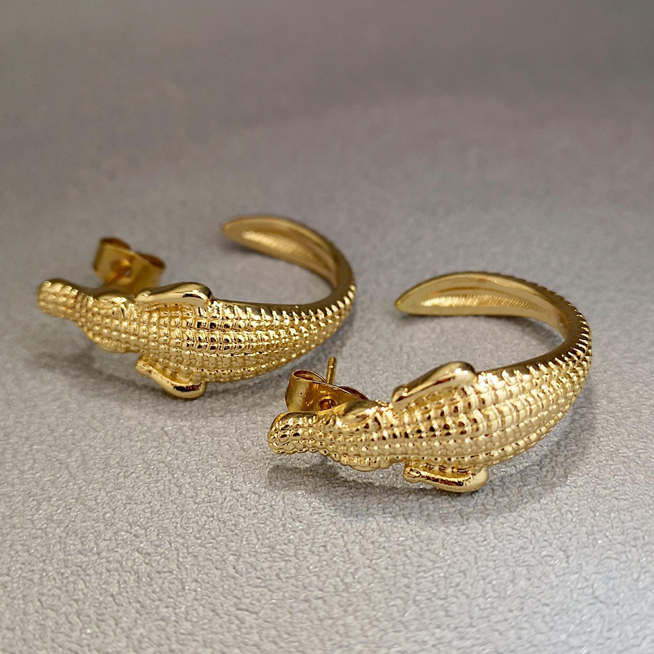 Introducción a los atributos del bebé Aretes de cocodrilo de moda de personalidad exagerada europea y americana Ventas directas de fábrica nuevos aretes transfronterizos aretes creativos de cocodrilo |