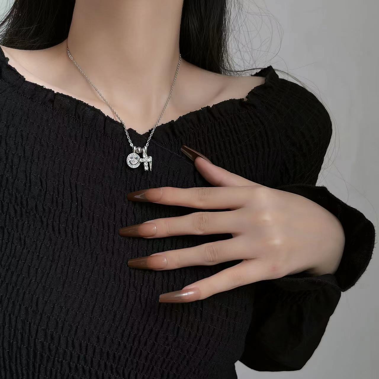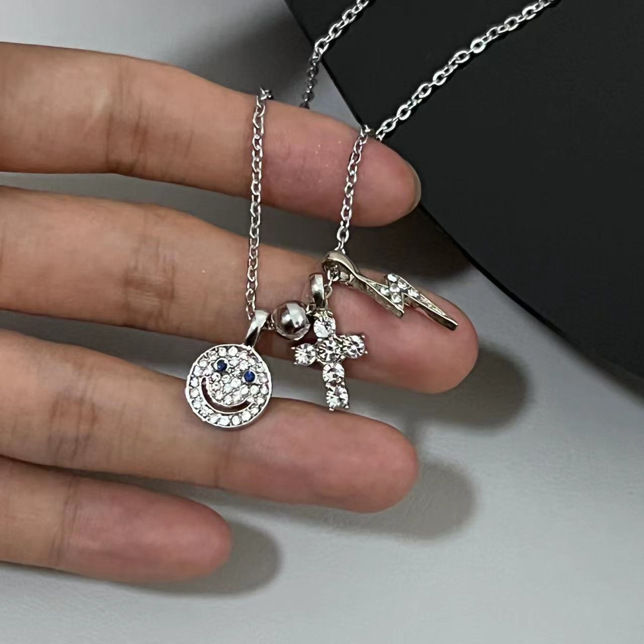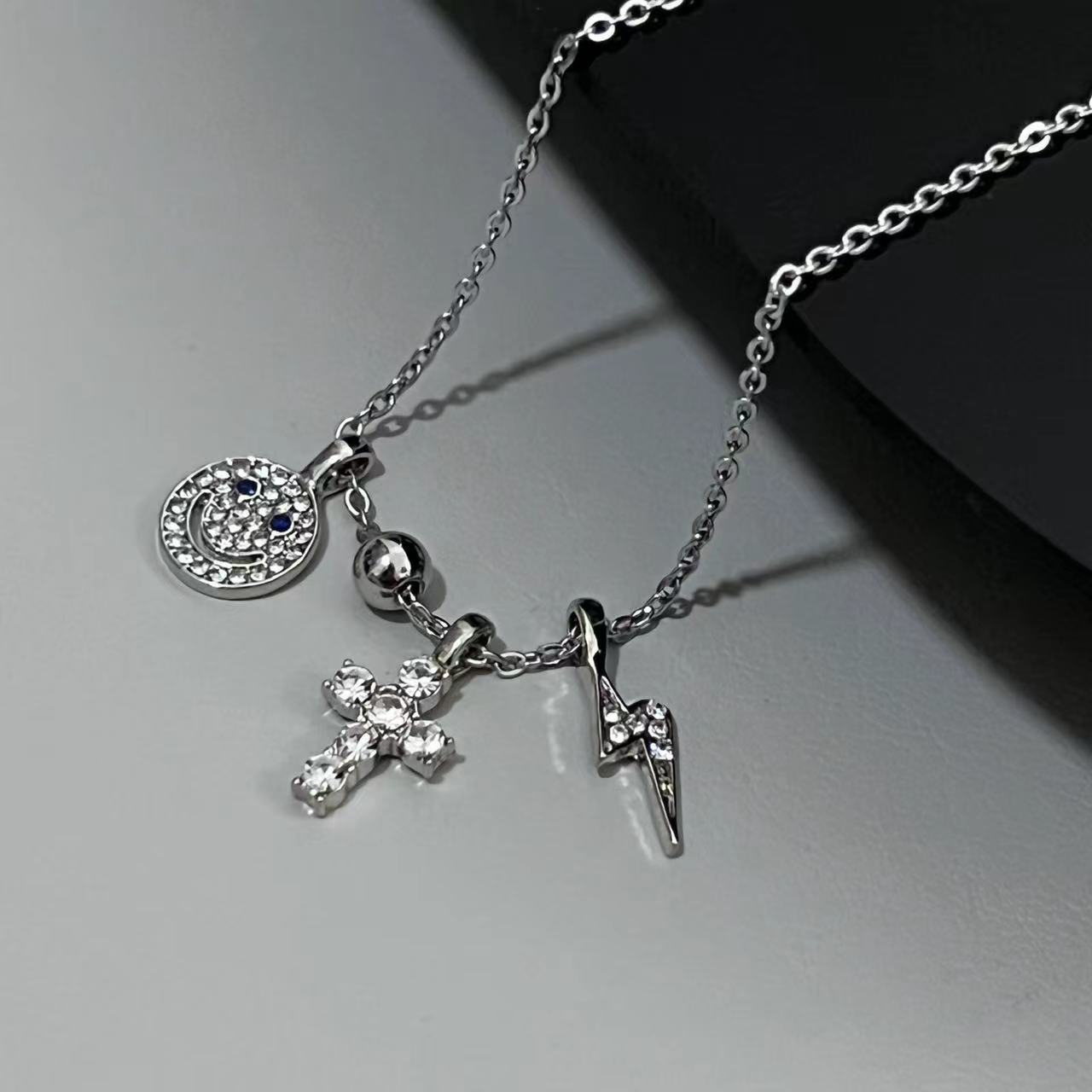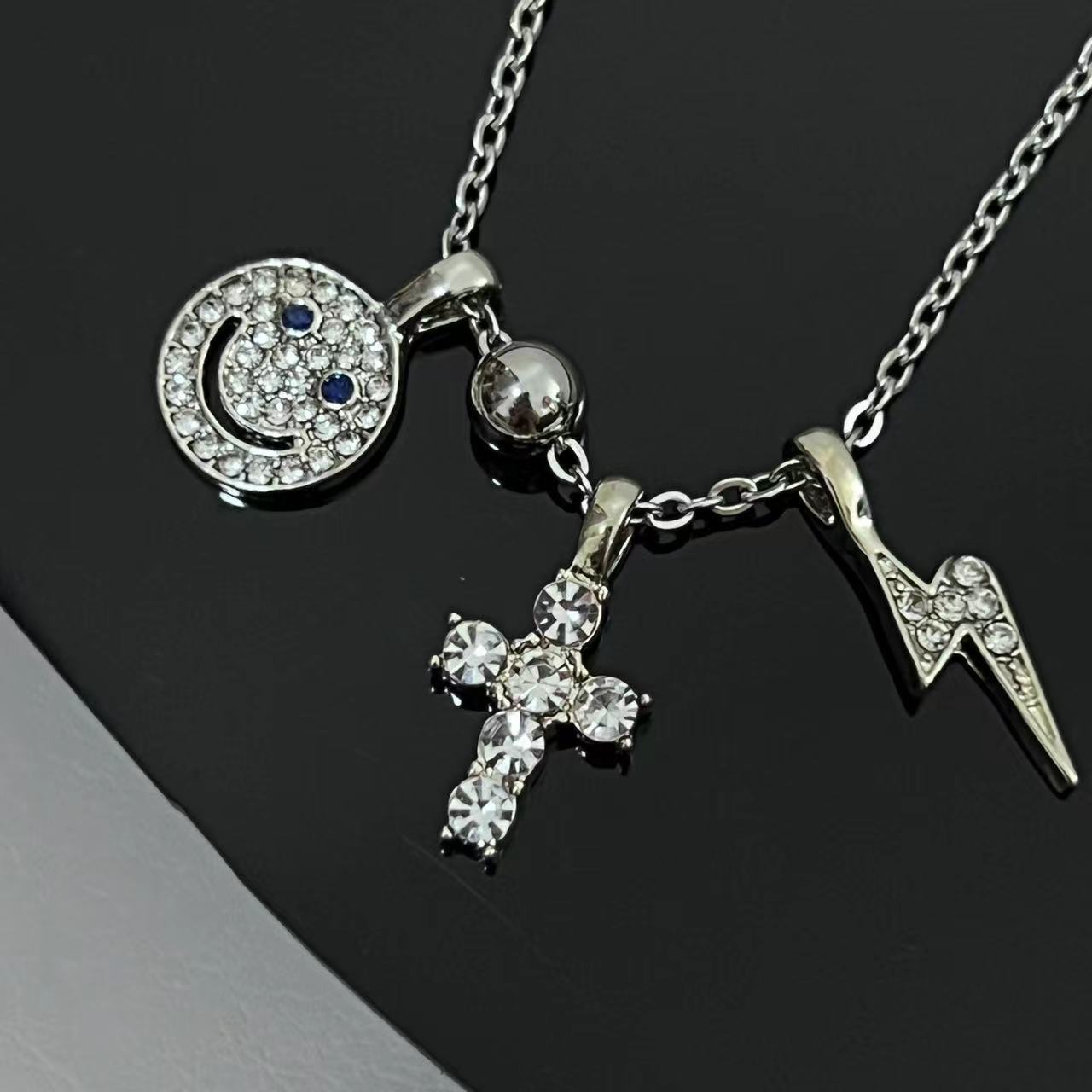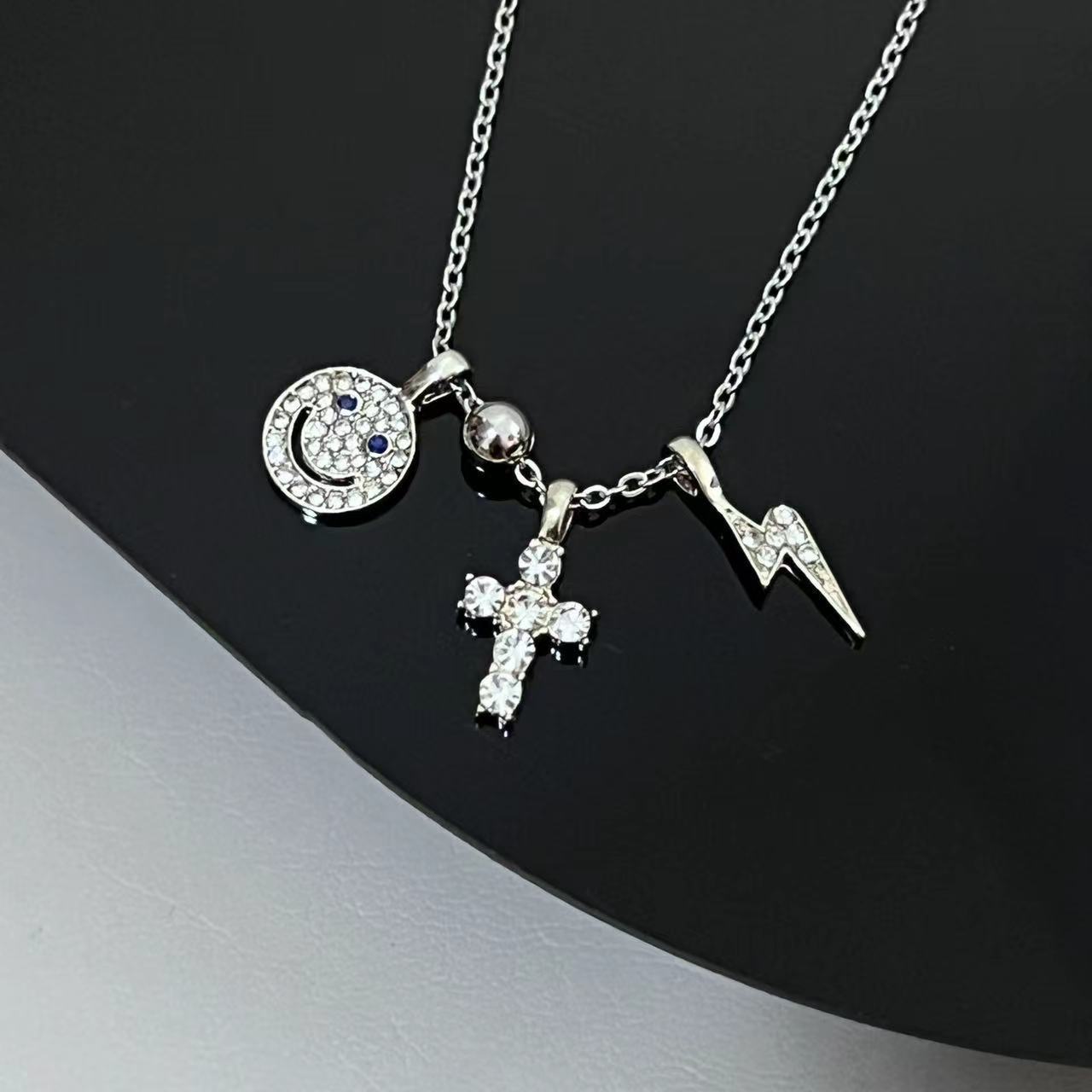Collar de lujo ligero con cruz sonriente y diamantes de imitación para mujer, diseño de verano, cadena de clavícula, 2023