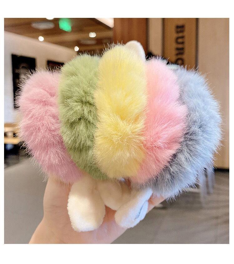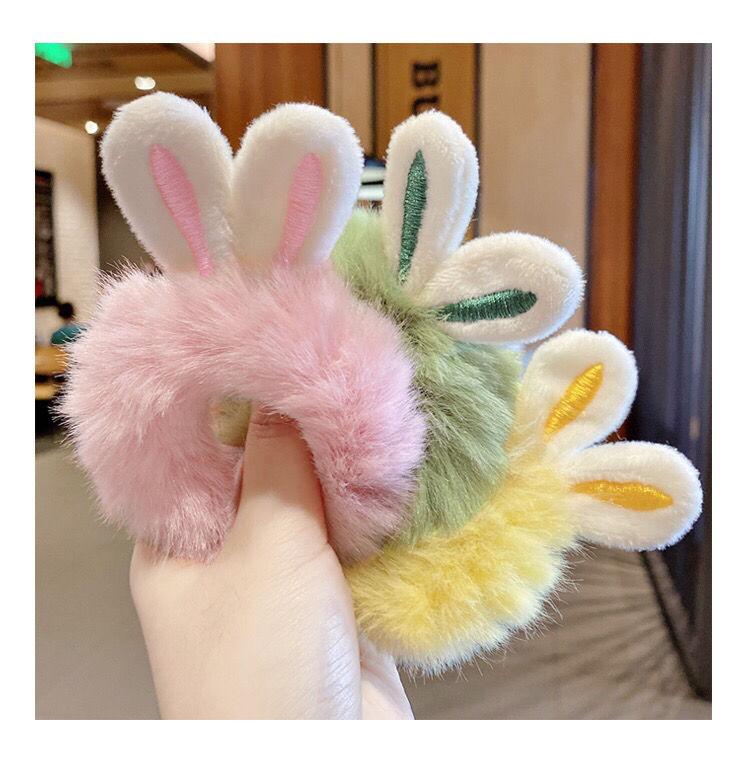 Pink plush rabbit ears, Beige plush rabbit ears, Ginger plush rabbit ears, Blue plush rabbit ears, Green plush...