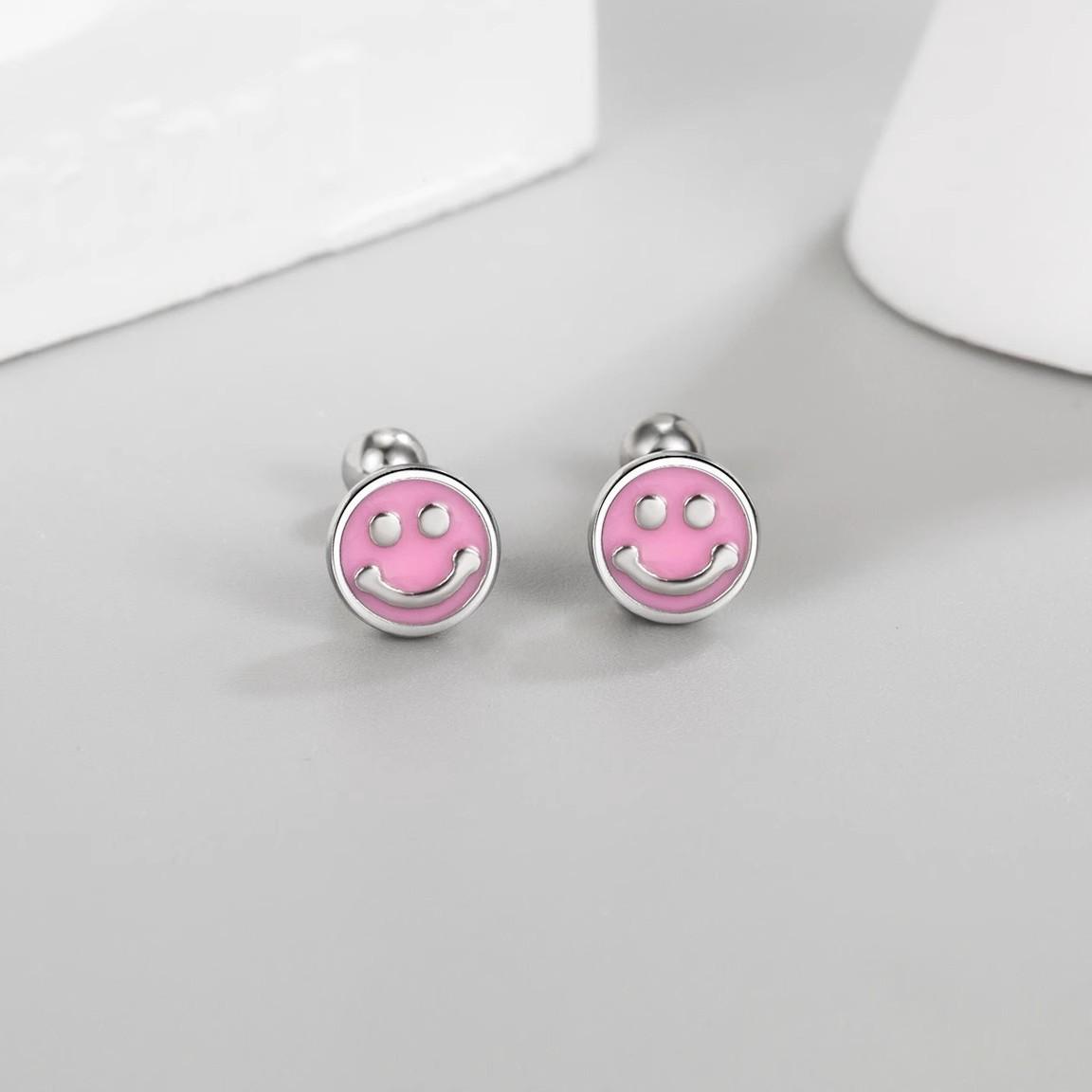 Pendientes de botón con cara sonriente de arcoíris, elegantes y sencillos, de estilo occidental, con diseño de nicho para mujer, combinables con todo, venta al por mayor, 2023