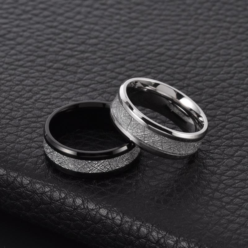 Titanium Steel Ring Trendy Men's Fashion Rime Pattern Personality Inlay Ring Simple Silver White Carbon Fiber ...