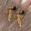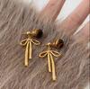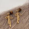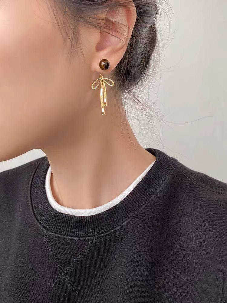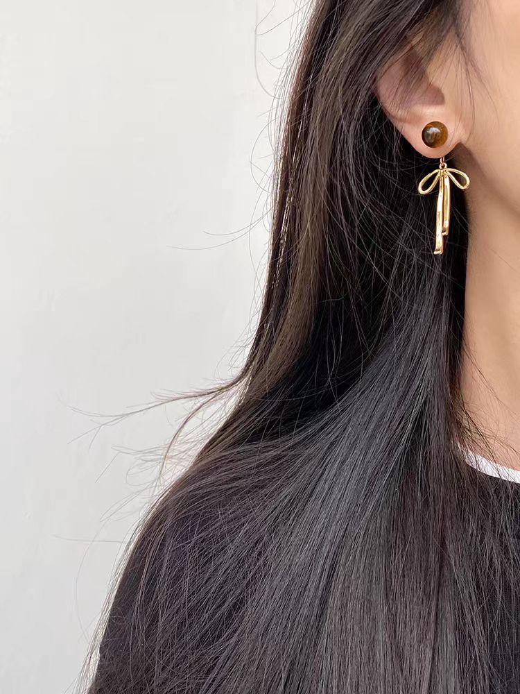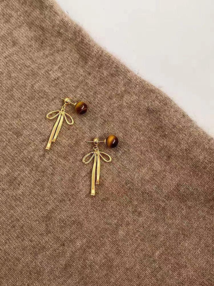 Pendientes de nicho de alta calidad retro con lazo para invierno, nuevos y populares pendientes Maillard con diseño de piedra de ojo de tigre.