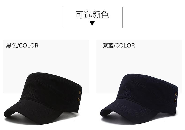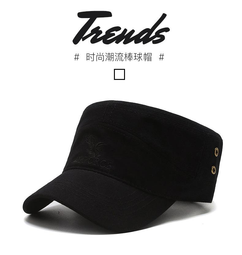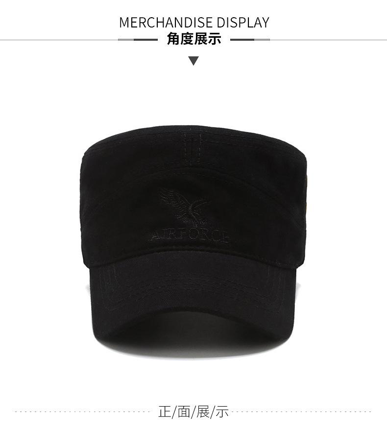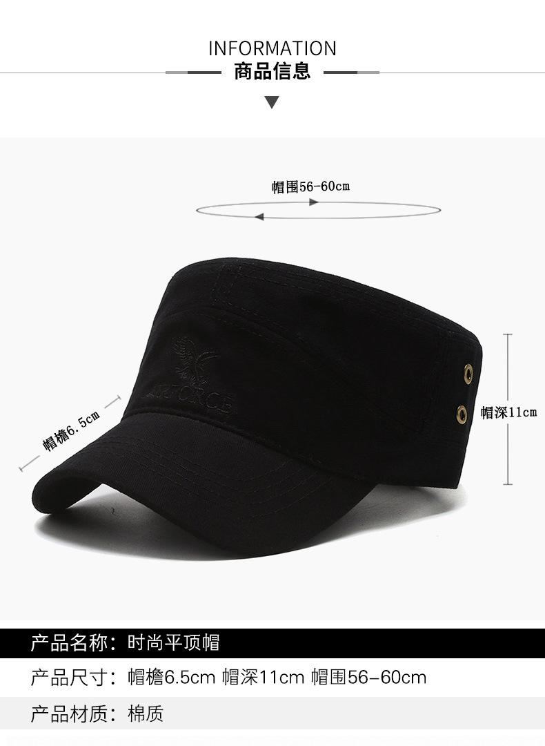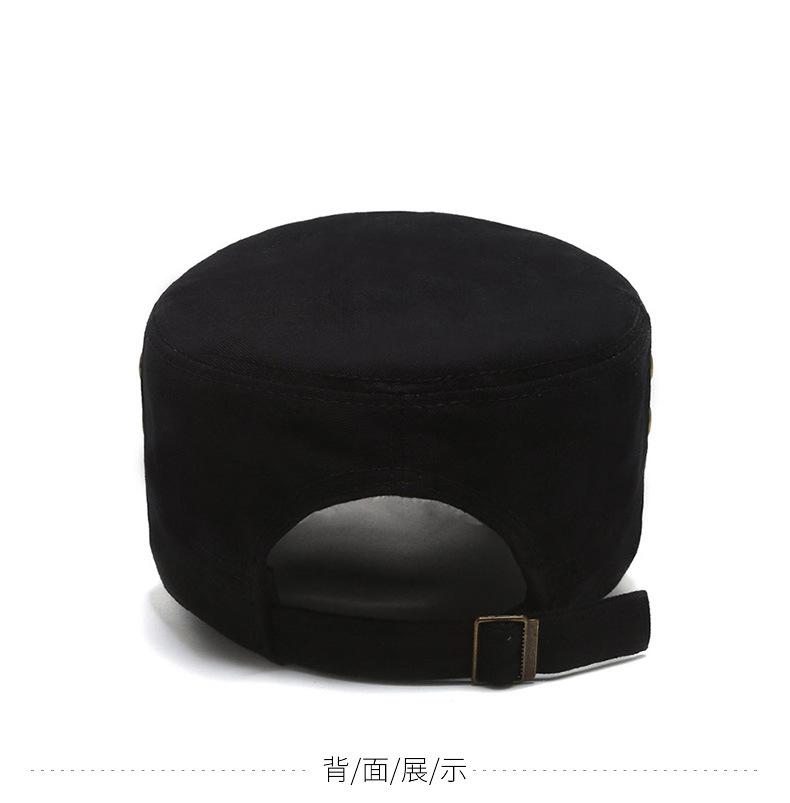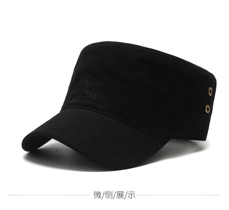 Sombrero de copa plana para hombre, gorra militar, gorra informal de primavera y otoño para hombre de mediana edad, protector solar, sombrero de verano negro de ala corta.