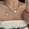 Collar multicapa con colgante de mariposa, estilo moderno europeo y americano, con cadena a cuadros elegante y sencilla, para clavícula.