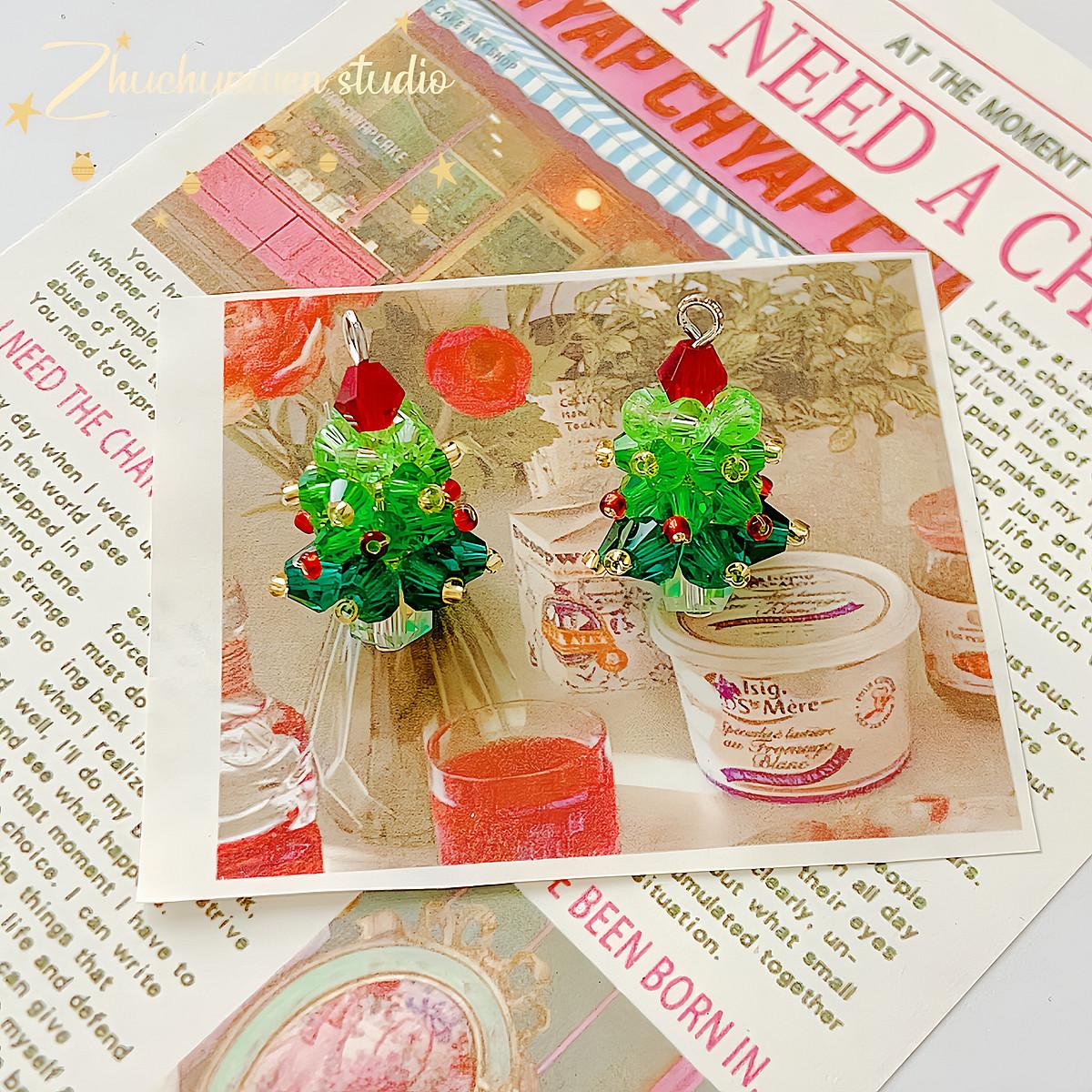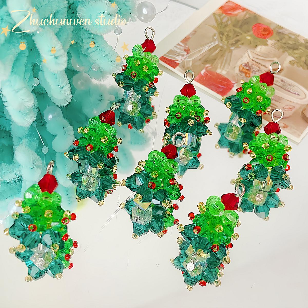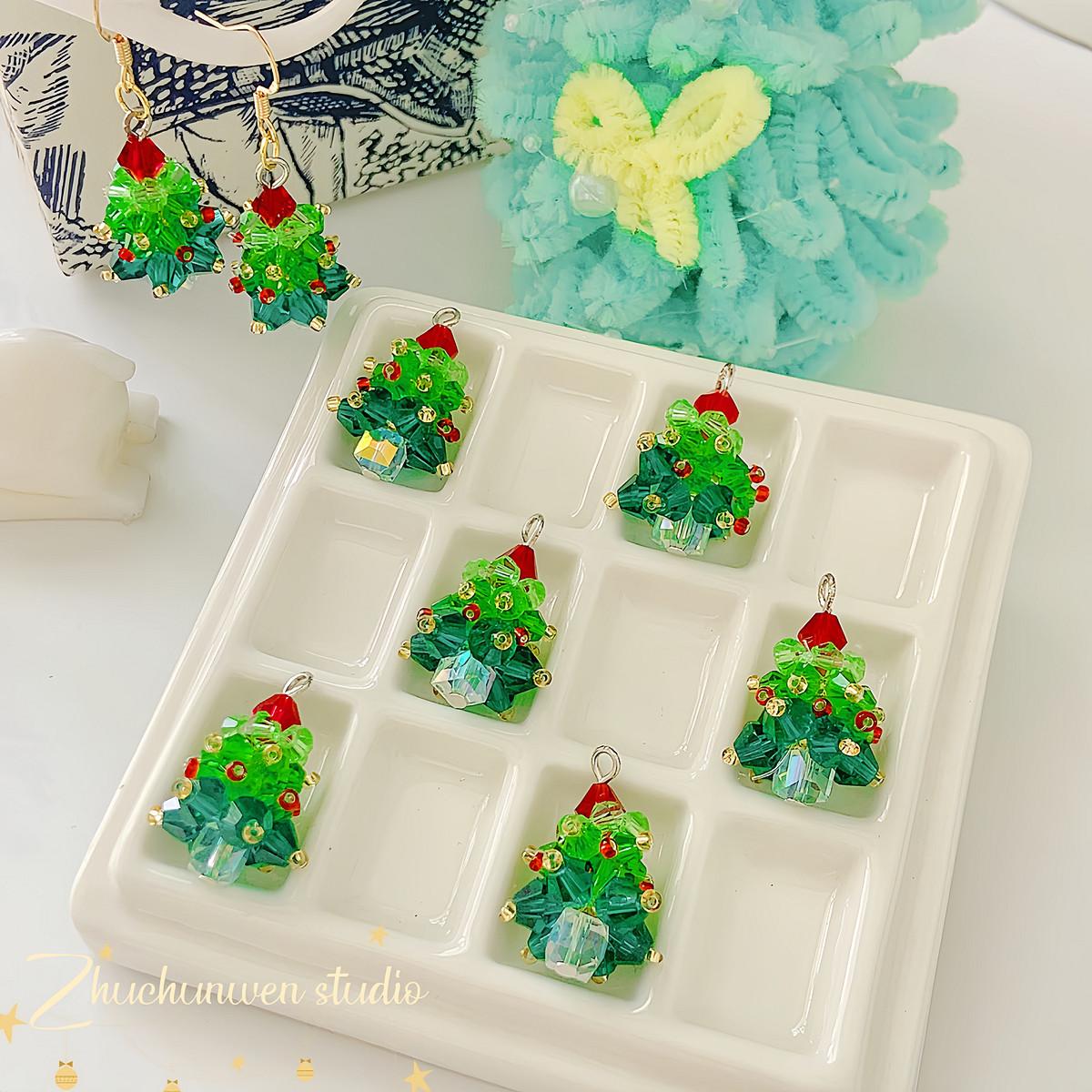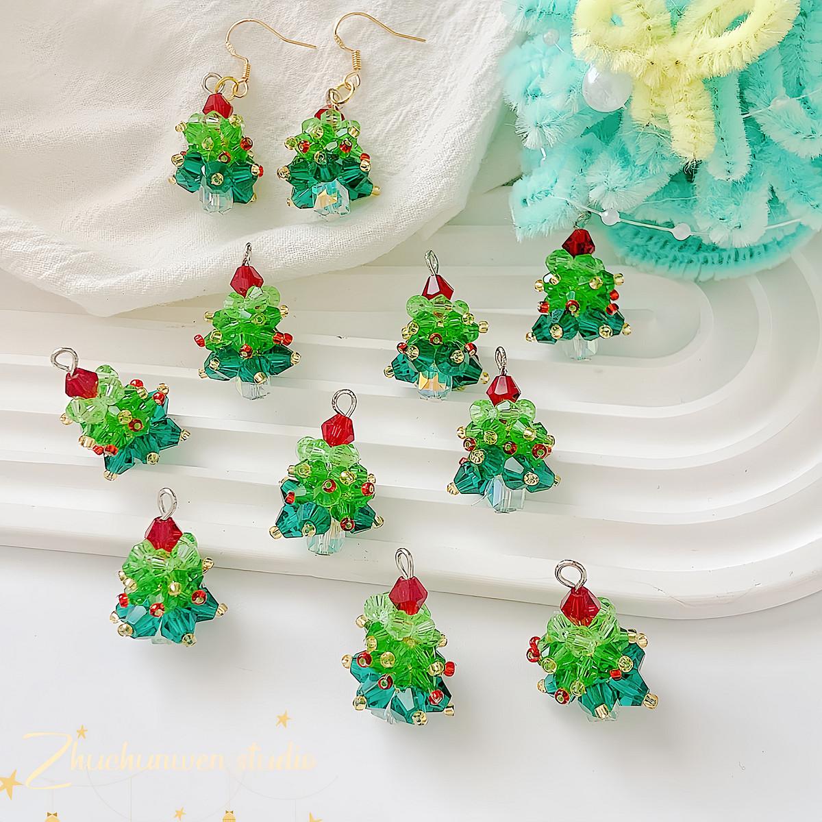 Colgante de árbol de Navidad de cristal, tejido tridimensional, hecho a mano, con cuentas, para pulsera, collar, accesorios de joyería