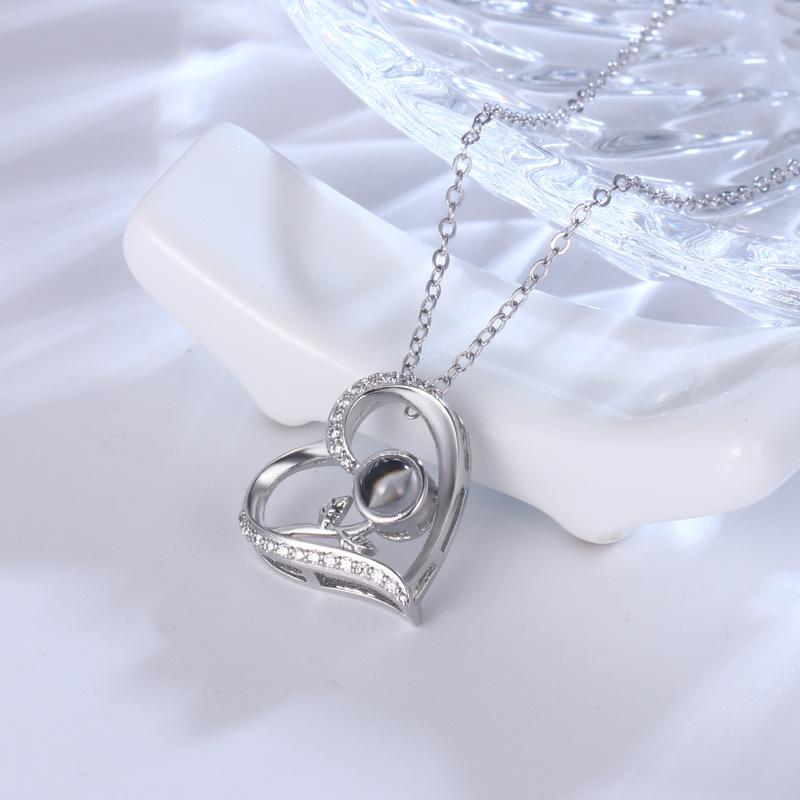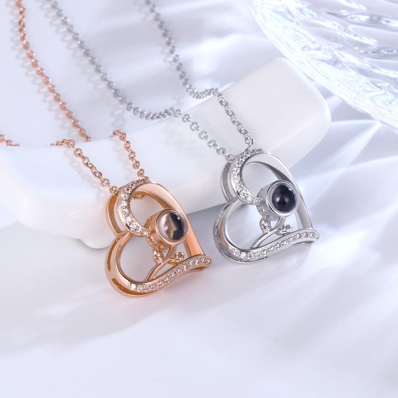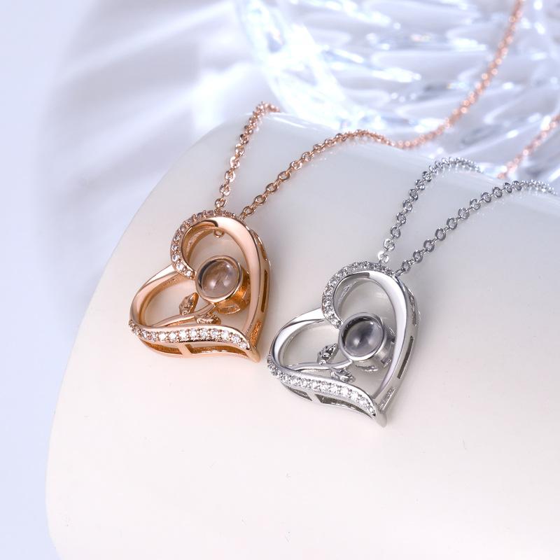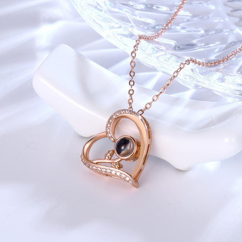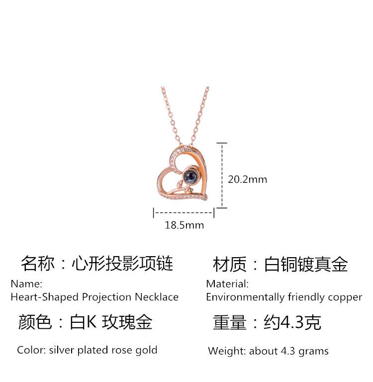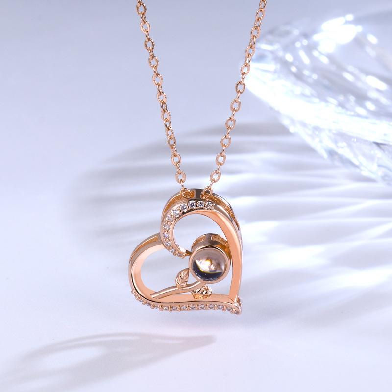 Collar transfronterizo de alta calidad con diseño de minoría femenina en forma de corazón, 100 idiomas, te amo, cadena de clavícula para enviar a su novia