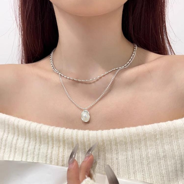 Collar de perlas de doble capa apiladas para mujer, nuevo y popular, accesorio de moda de nicho de lujo ligero, joyería de alta calidad, colgante de cadena de clavícula