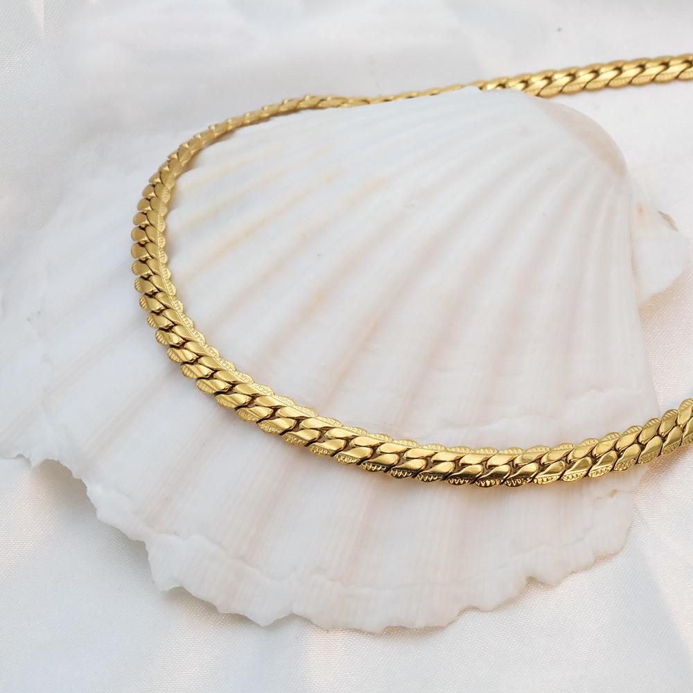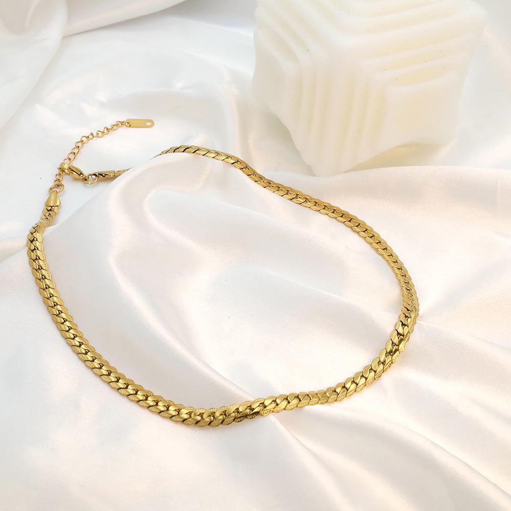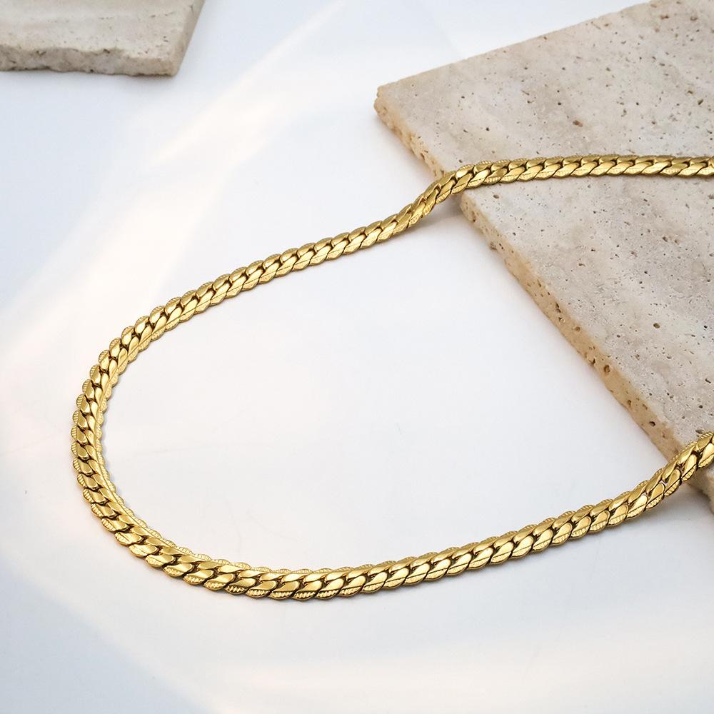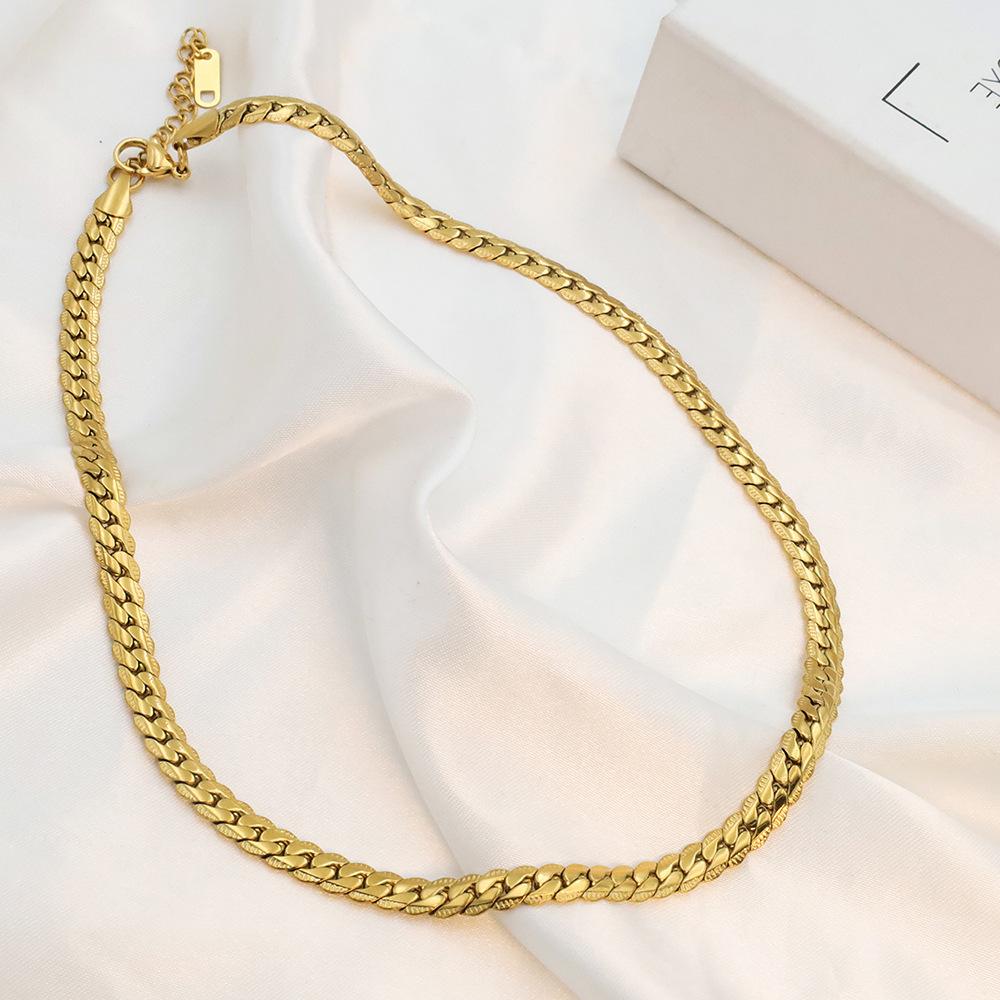 Joyería transfronteriza, estilo europeo y americano, cadena simple de acero inoxidable con relieve NK, collar de cadena de oro de 18 quilates de 6 mm que no se desvanece.