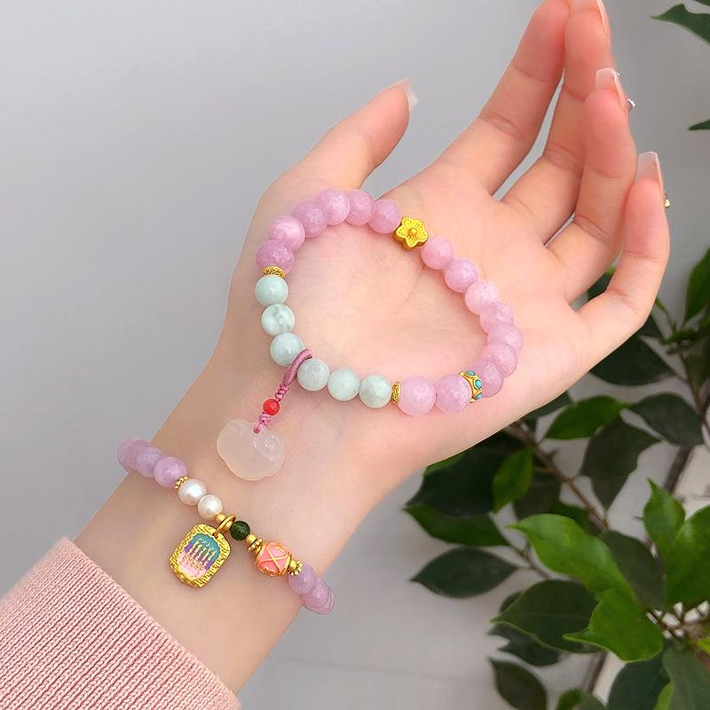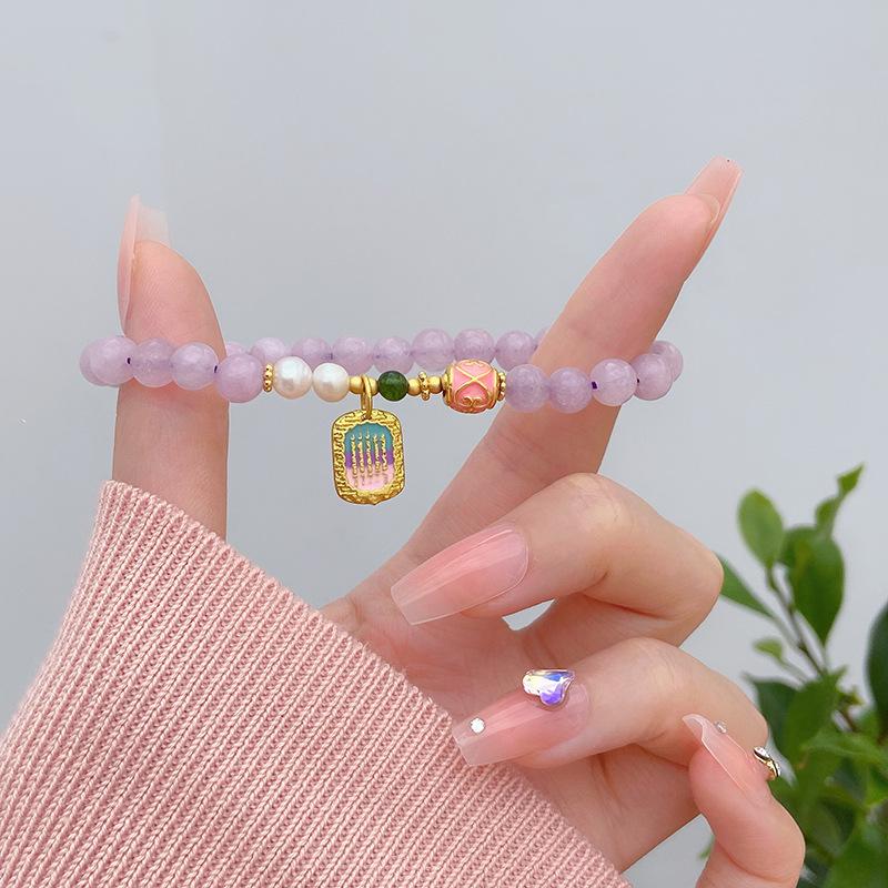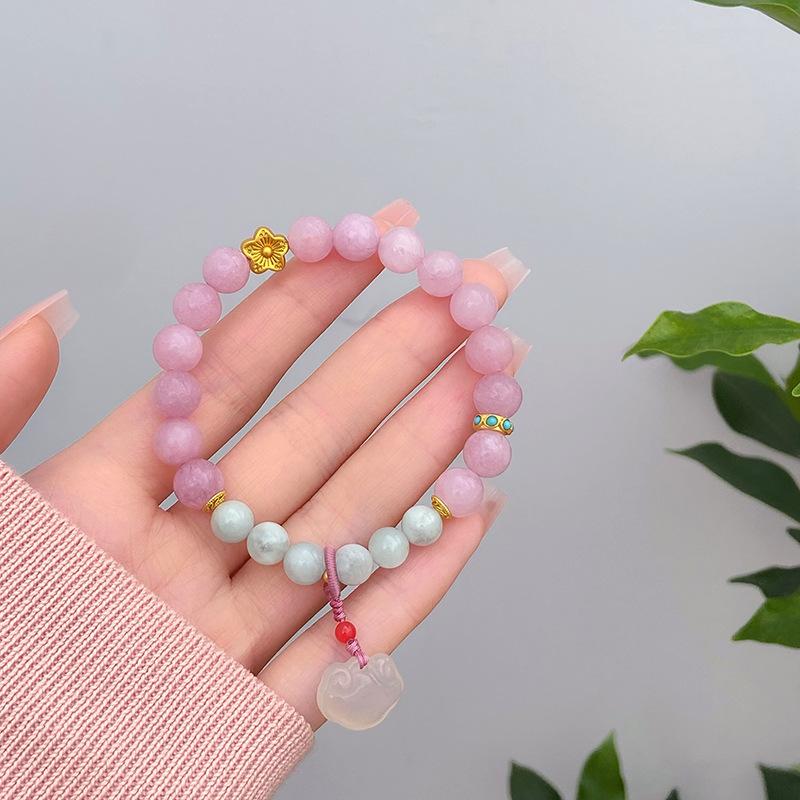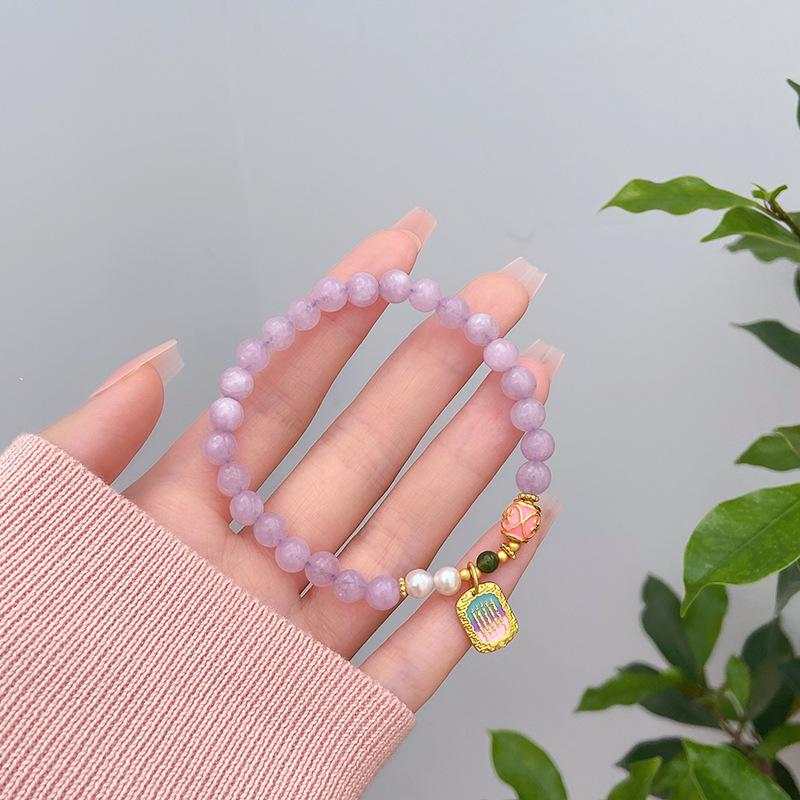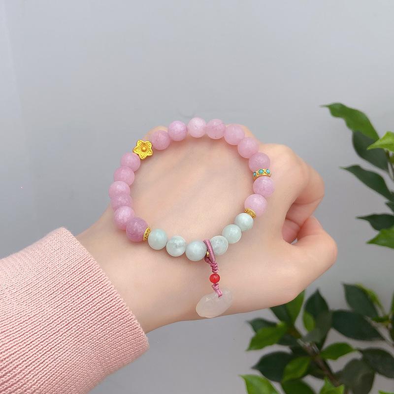 Pulsera de piedra natural Lihui púrpura optimizada, estilo hada dulce y fresco, diseño de flor de melocotón para mujer, pulsera Ruyi
