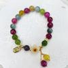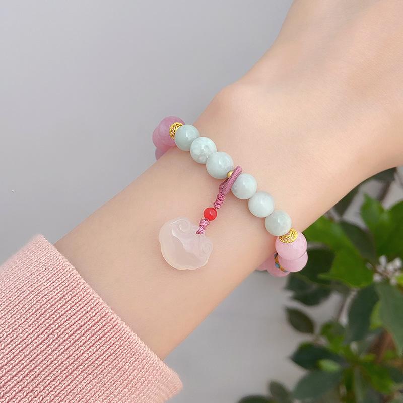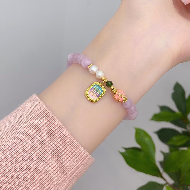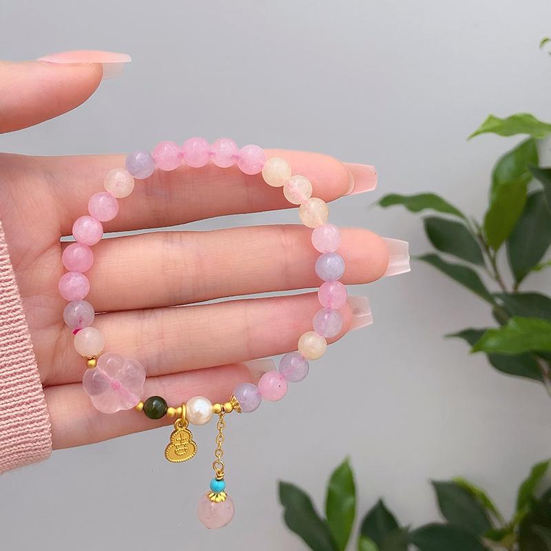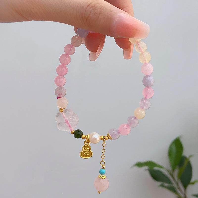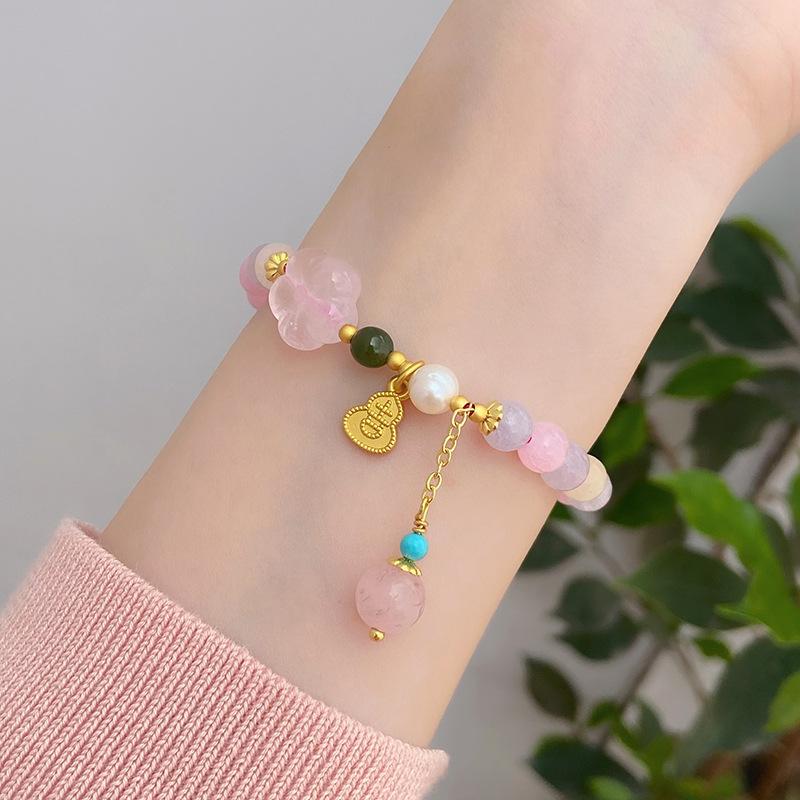 Pulsera de piedra natural Lihui púrpura optimizada, estilo hada dulce y fresco, diseño de flor de melocotón para mujer, pulsera Ruyi
