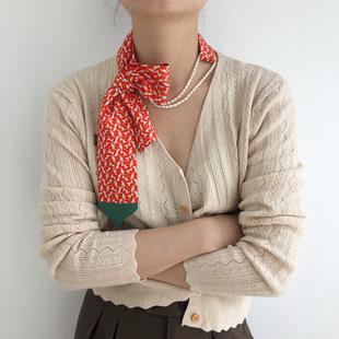 | Pañuelo de seda largo y estrecho con diseño floral, estilo coreano, literario, para principios de otoño, multifuncional, venta al por mayor |
