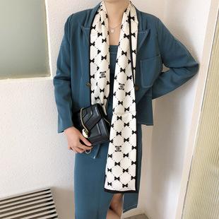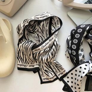 | Serie blanco y negro cinta larga de seda estilo retro de Hong Kong bufanda de seda de doble capa y doble cara multifuncional diadema bufanda |