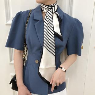 | Pañuelo de seda a rayas largo coreano, pañuelo largo estrecho que combina con todo, cinta para otoño e invierno, traje de moda, pañuelo pequeño, pañuelo de seda |