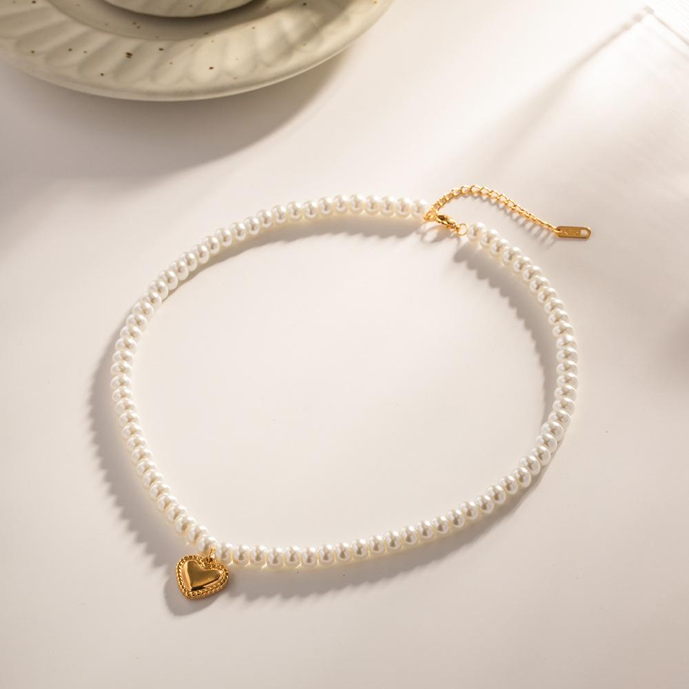 Collar Estilo Europeo y Americano, Colgante de Corazón de Perla de Verano, Cadena de Joyería Versátil Transfronteriza de Acero de Titanio que No se Desvanece