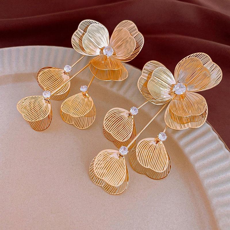 Pendientes de borla de mariposa y flor de metal avanzados, diseño exagerado, pendientes de temperamento, pendientes de moda de nicho al por mayor