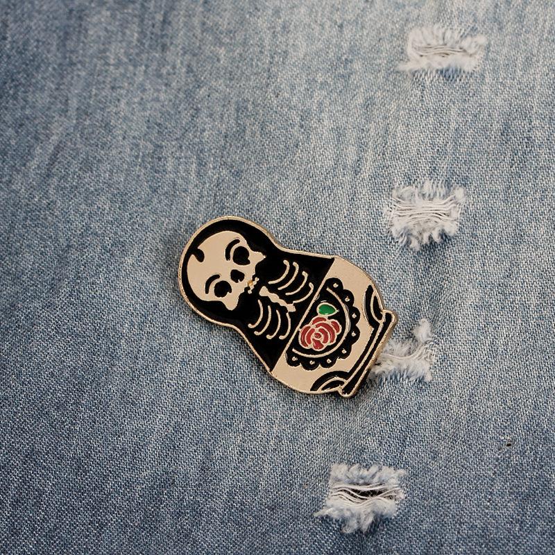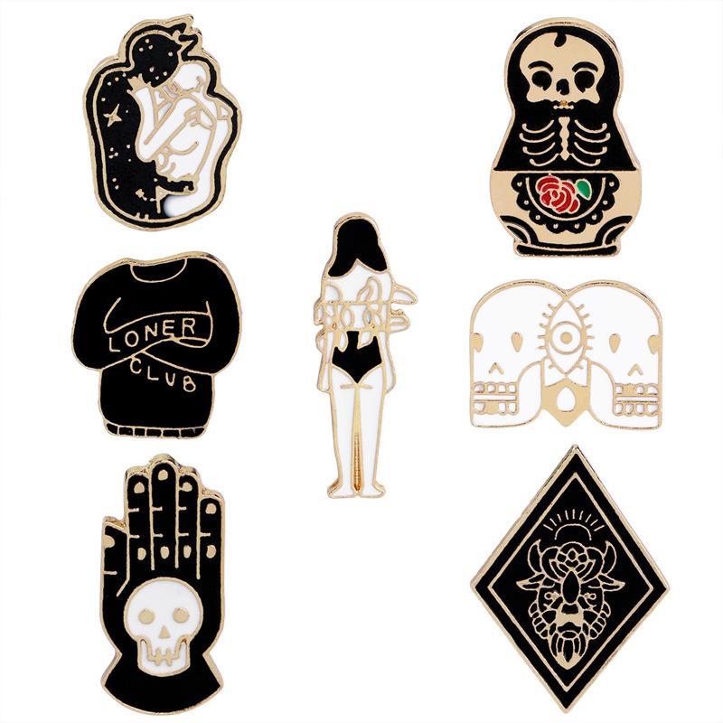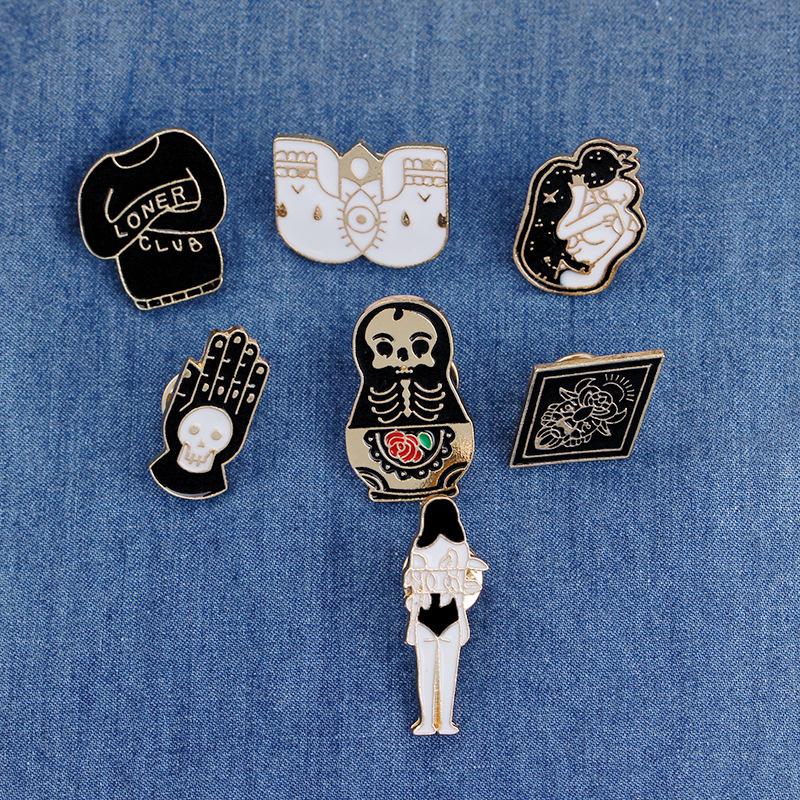 Insignia de dibujos animados europeos y americanos, ropa personalizada, calavera, ropa juvenil, ropa, broche con goteo, bolso, suéter, accesorios