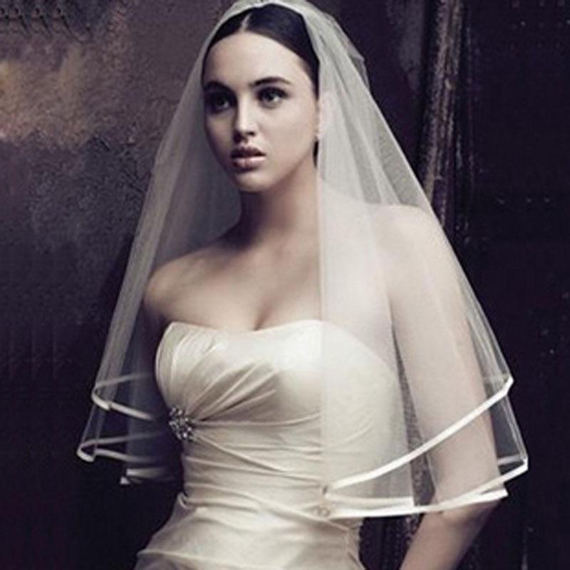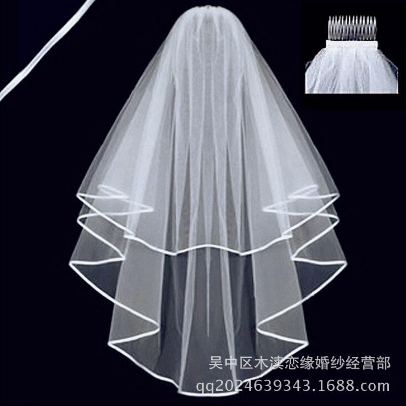 Material: Hilo duro + borde de tela forjada (Actualmente tenemos dos estilos de este velo: una capa y doble capa)