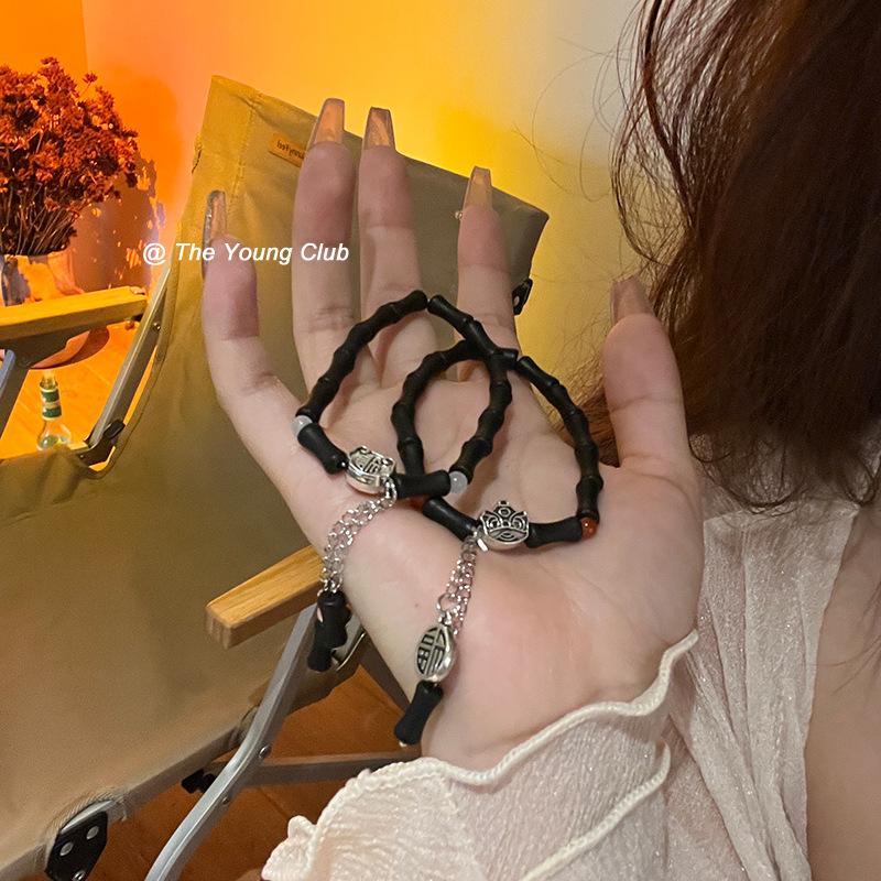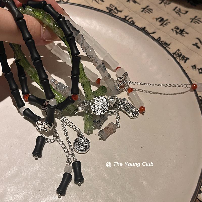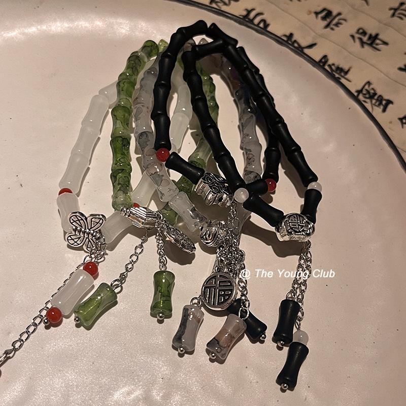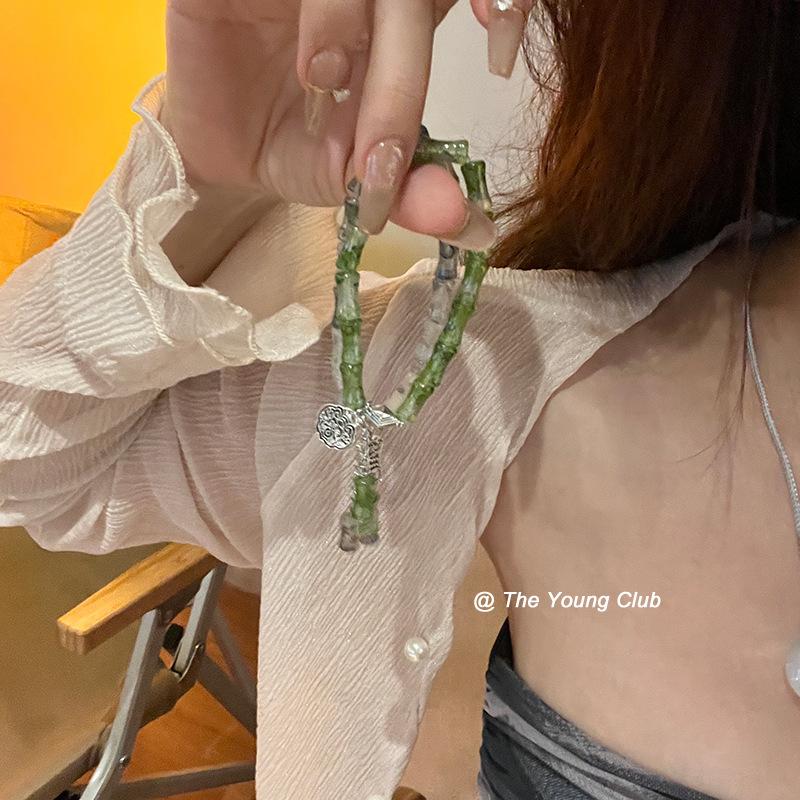Nueva pulsera de la suerte de estilo chino con diseño de bambú verde alto para festivales, pulsera artística elástica con cuentas y nicho para mujer
