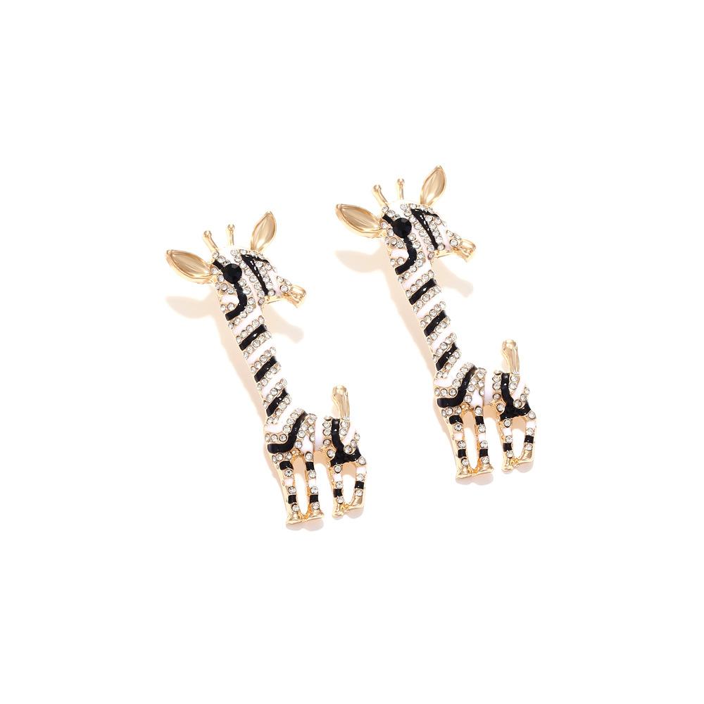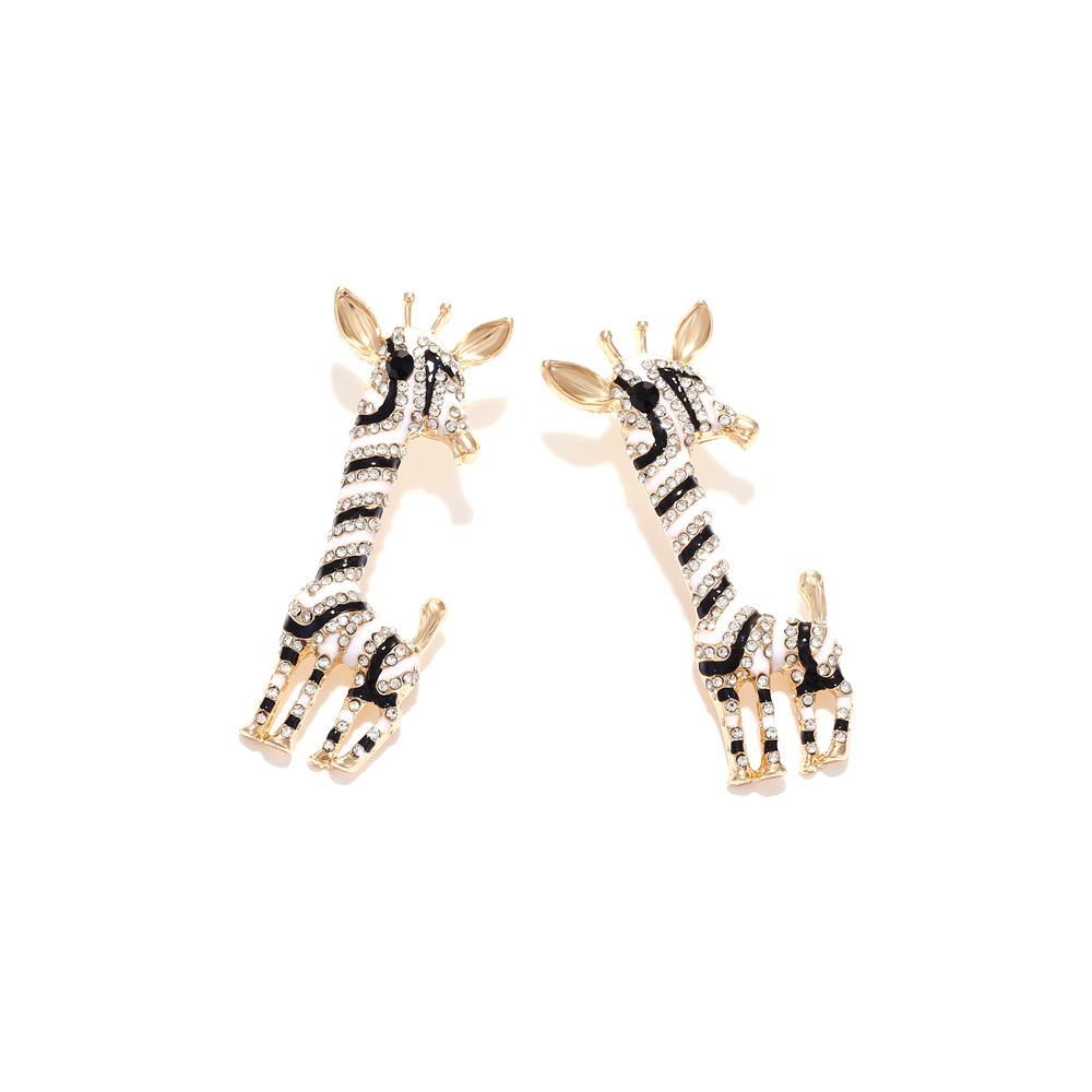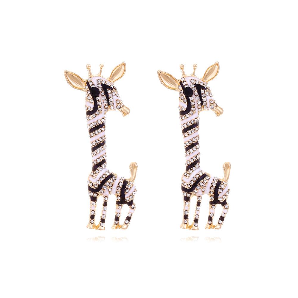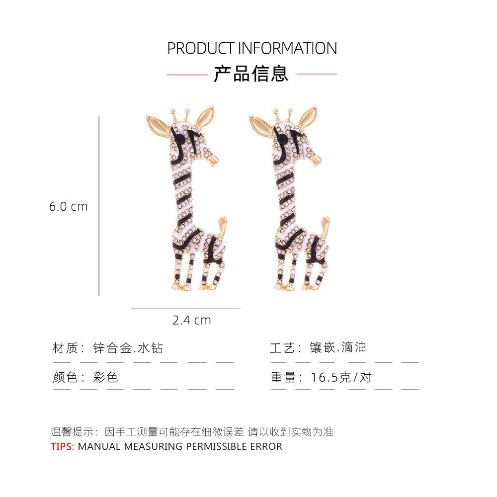 Pendientes de jirafa con goteo de aceite de aleación, bonitos, de estilo europeo y americano, con personalidad y temperamento, con incrustaciones de diamantes, de animales de dibujos animados, nuevos pendientes para mujer