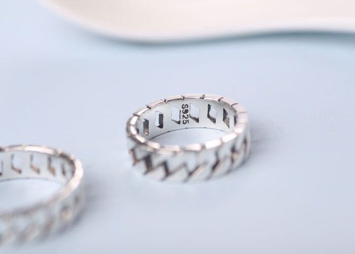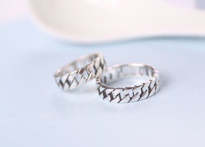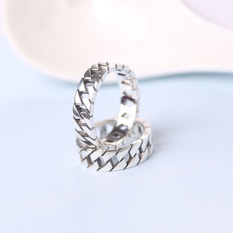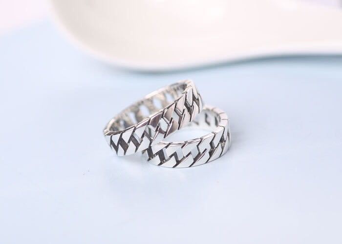Anillo Trenzado de Plata Tailandesa Plata 925 Anillo de Pareja para Hombre y Mujer Plata Tailandesa Vintage Anillo de Engranaje Torcido Vestido